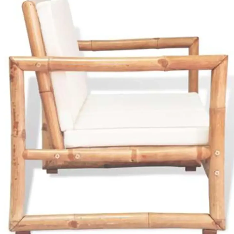 Deze duurzame bank is comfortabel en ideaal om op te lezen en te ontspannen. Hij is gemaakt van hoogwaardig, weerbestendig en waterdicht bamboe en is makkelijk schoon te maken met een vochtige doek. De dikke, afneembare kussens dragen bij aan het zitcomfort. De authentieke bamboekleur voegt een tropisch vleugje toe aan je buitenruimte.