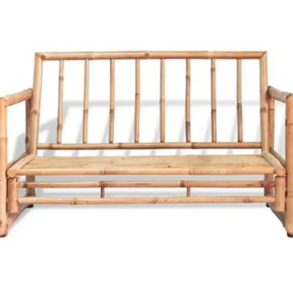 Deze klassieke bamboe bank is een geweldige toevoeging aan je tuin of andere buitenruimte.