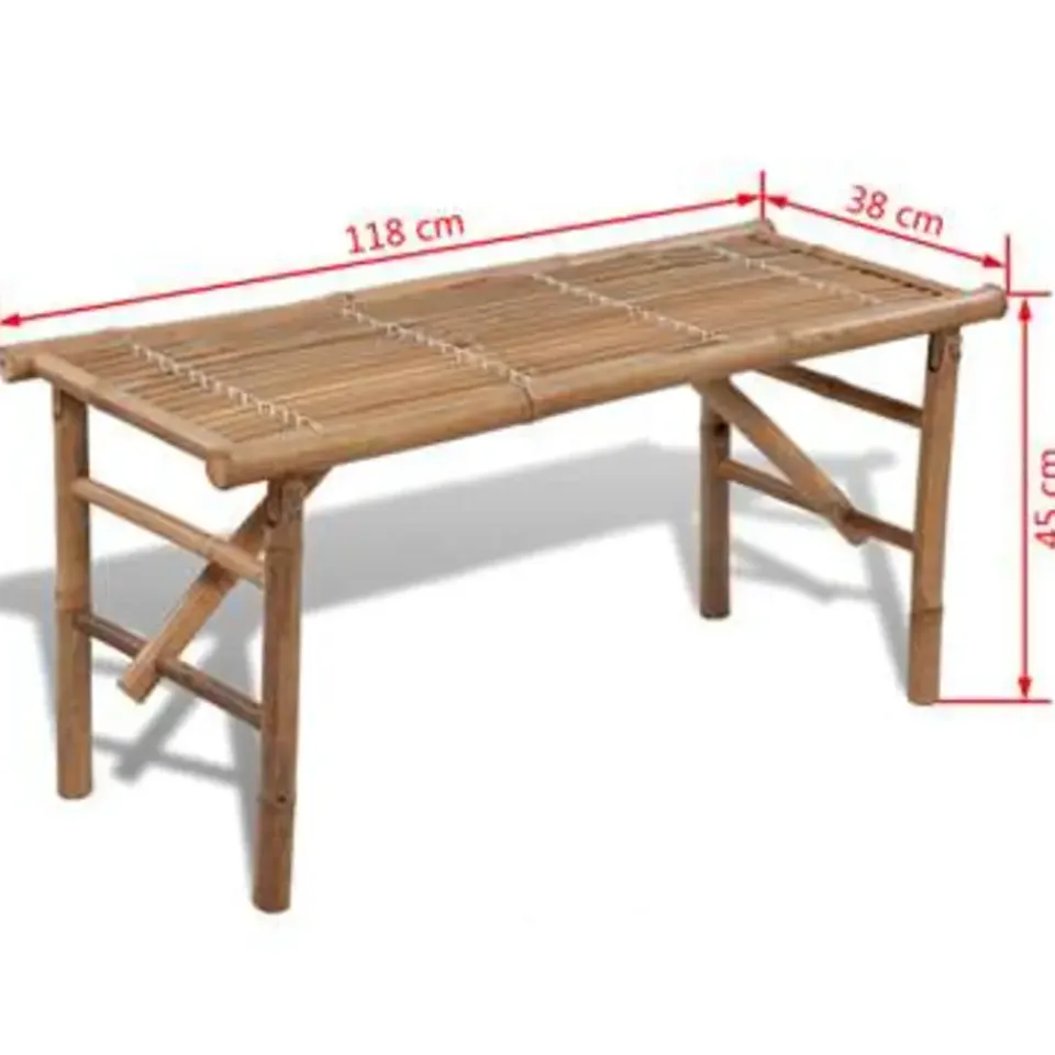 Hij kan worden ingeklapt en eenvoudig worden vervoerd of opgeborgen. Deze bank is gemaakt van weerbestendig en waterdicht bamboehout, waardoor hij duurzaam en stevig is. Hij is eenvoudig schoon te maken met een vochtige doek.