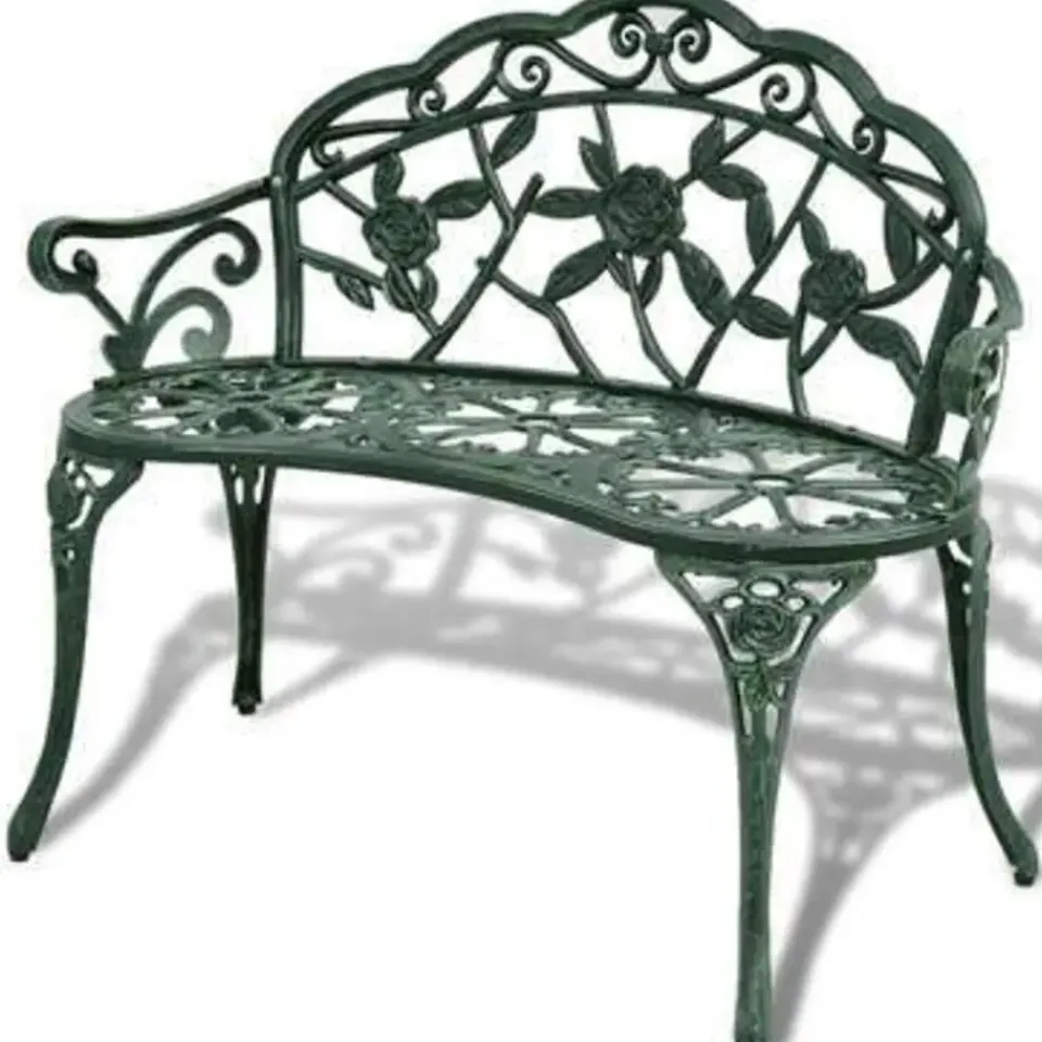 - Materiaal: gegoten aluminium rugleuning/zitting/armsteun + gietijzeren poten