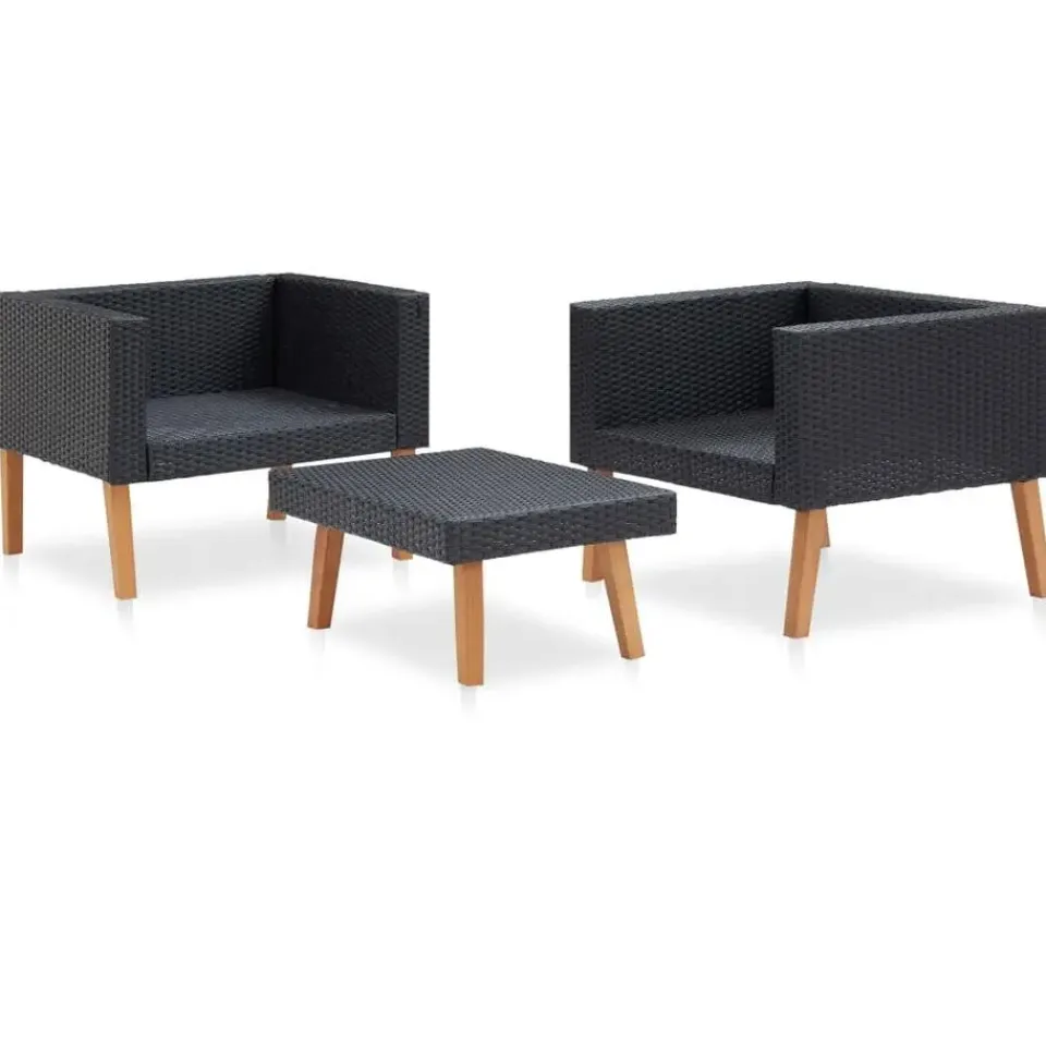 - Materiaal: PE-rattan, gepoedercoat staal, stof (100% polyester) en eucalyptushout met teak-look afwerking