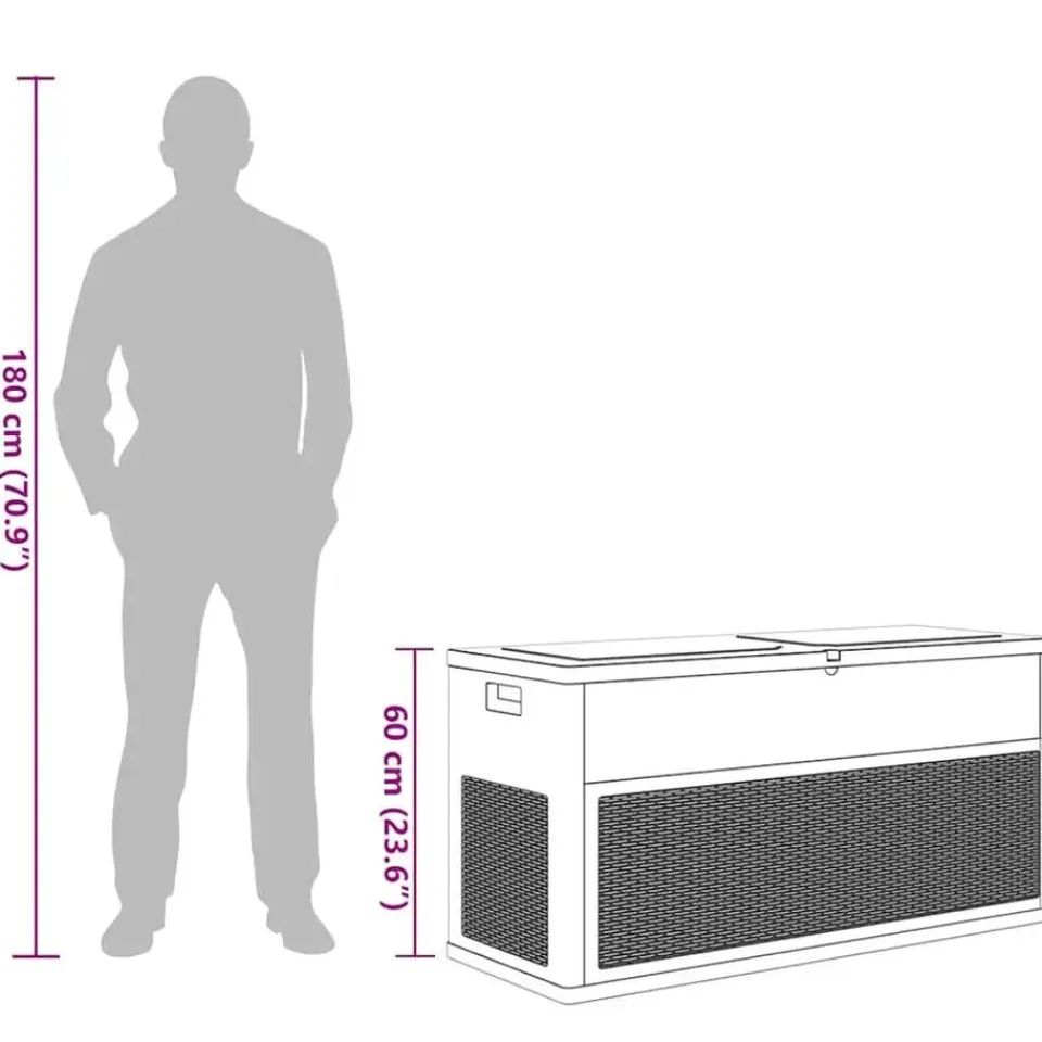 Gemaakt van duurzaam, weerbestendig kunststof, waardoor deze opbergdoos perfect geschikt is voor zowel binnen als buiten. Door het eenvoudige maar klassieke ontwerp past de tuinkist goed in elk interieur.