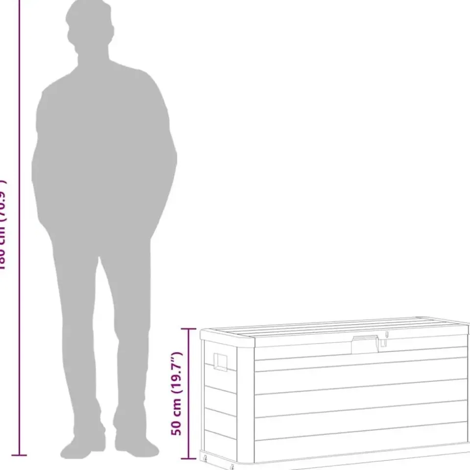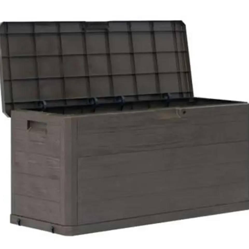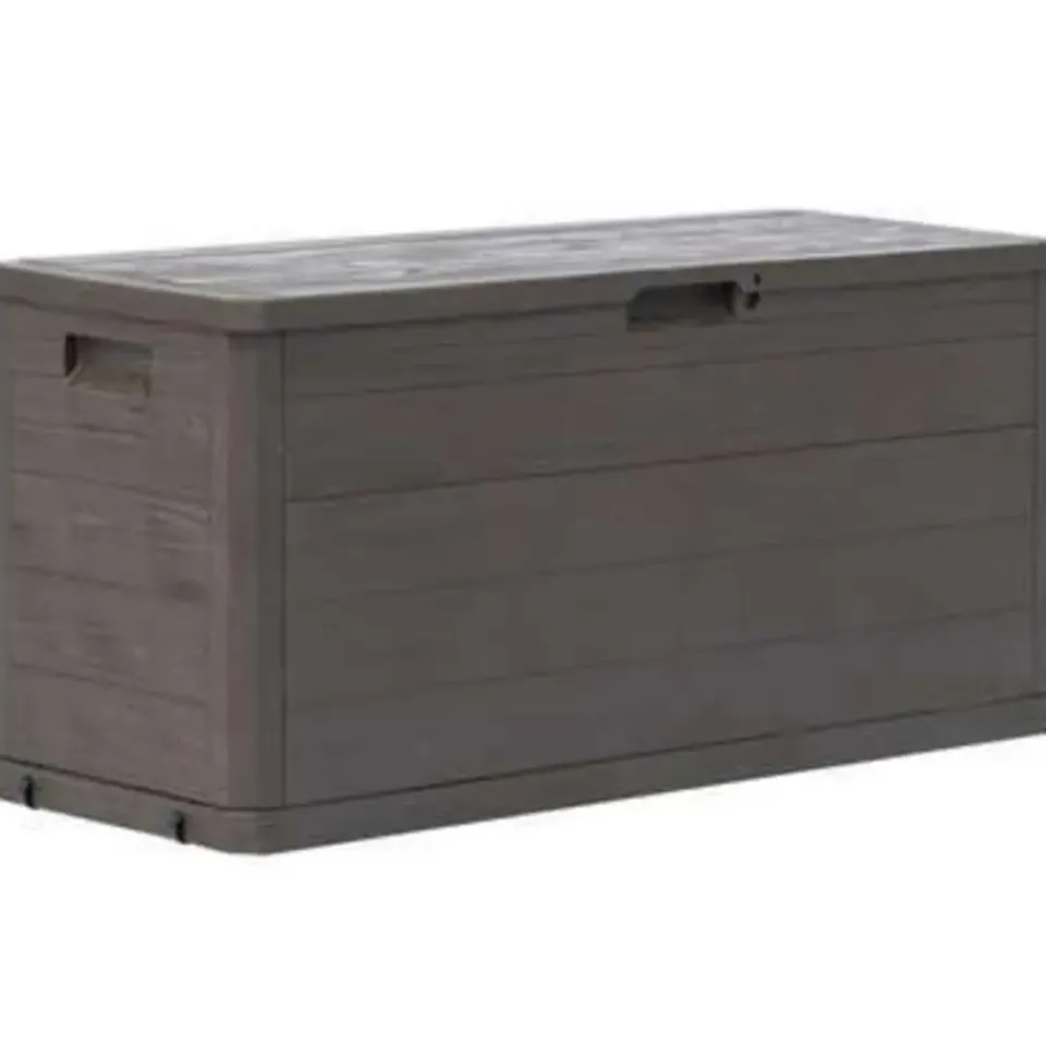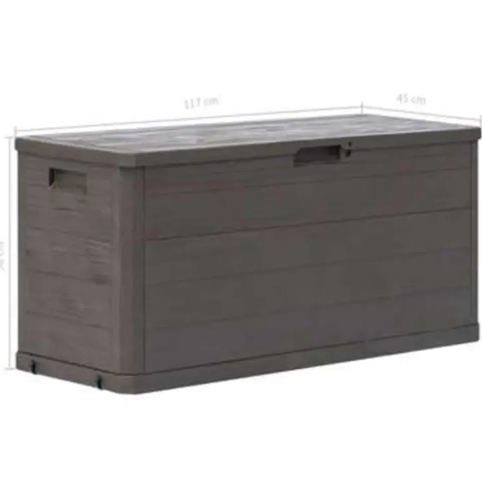 - Tijdloos ontwerp: dankzij het ontwerp met hout-structuur heeft de tuinopbergbox een ingetogen, maar tijdloze uitstraling, die goed in elke omgeving past.
