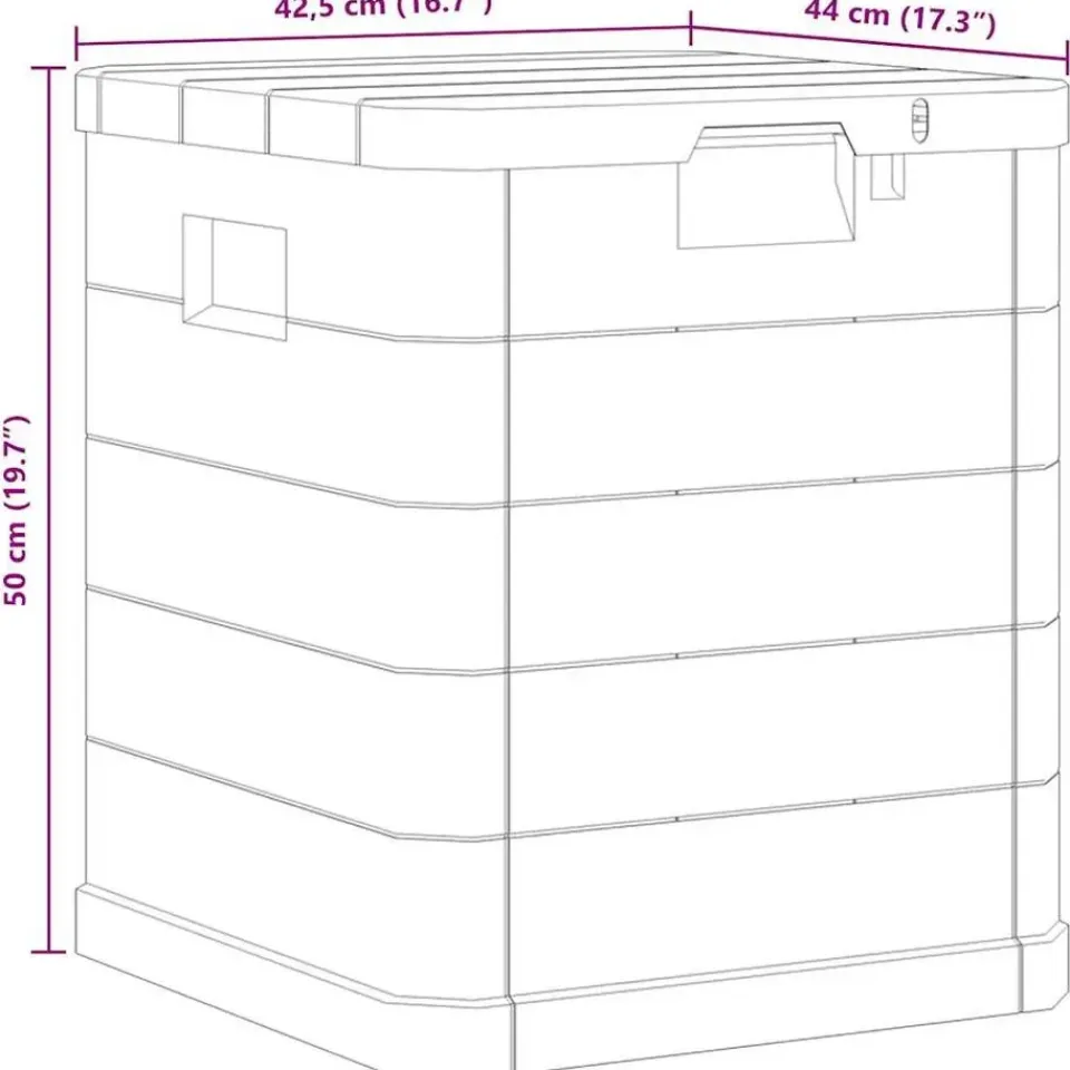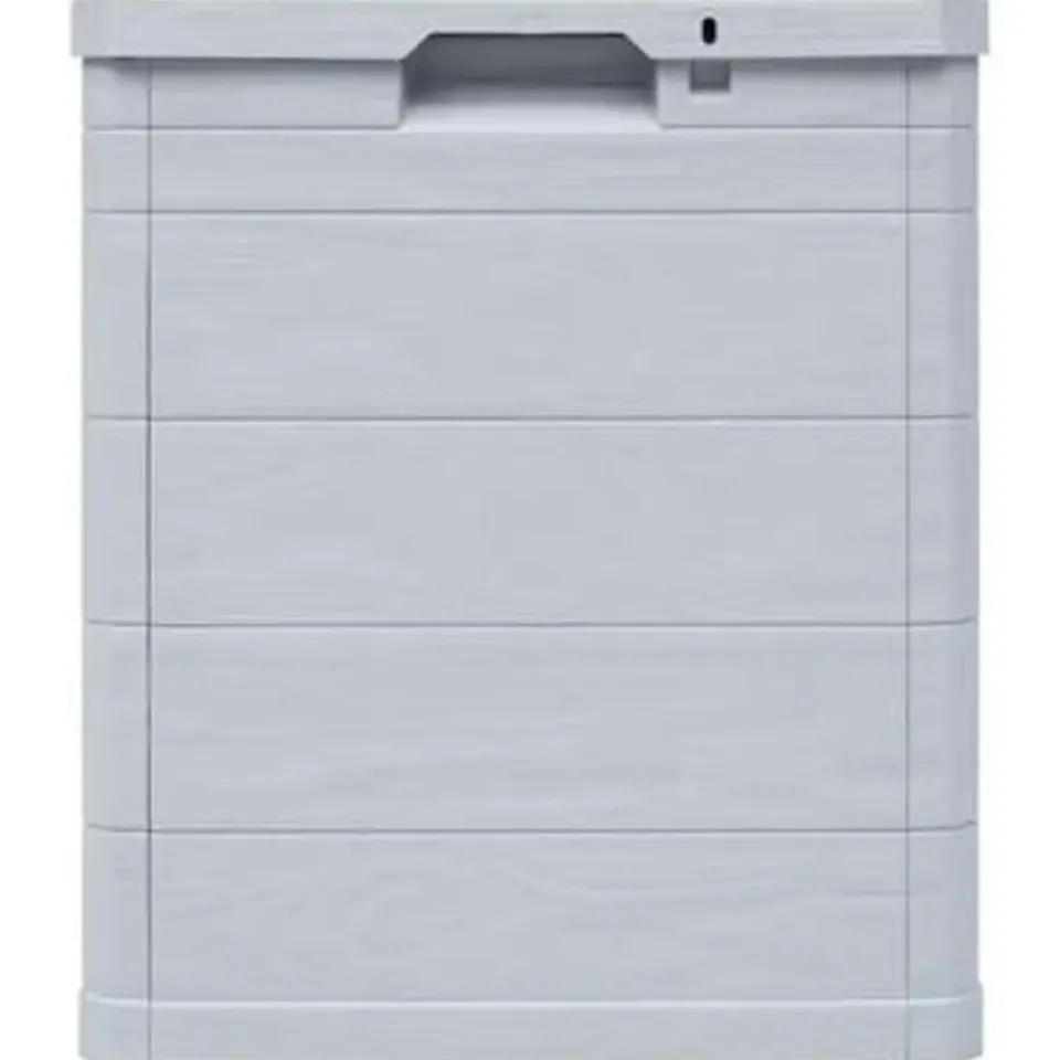 - Tijdloos ontwerp: dankzij het ontwerp met hout-structuur heeft de tuinopbergbox een ingetogen, maar tijdloze uitstraling, die goed in elke omgeving past.