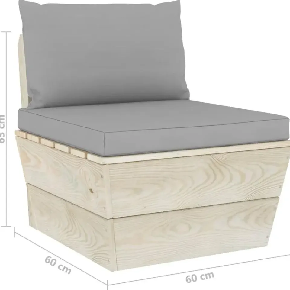 De bank is gemaakt van geïmpregneerd vurenhout waardoor hij duurzaam en stabiel is. Deze middenbank heeft een stevige constructie en vergt weinig onderhoud. Dankzij de 100% polyester bekleding en dikke vulling zijn de palletkussens zacht en bieden ze veel comfort. De sofa is ideaal voor filmavonden, voor gamemiddagen en om op de veranda van het weer te genieten. Dit zitmeubel heeft een modulair ontwerp, waardoor het volledig flexibel en gemakkelijk te verplaatsen is. Je kan het combineren met andere modulaire segmenten om je eigen loungeset samen te stellen!
