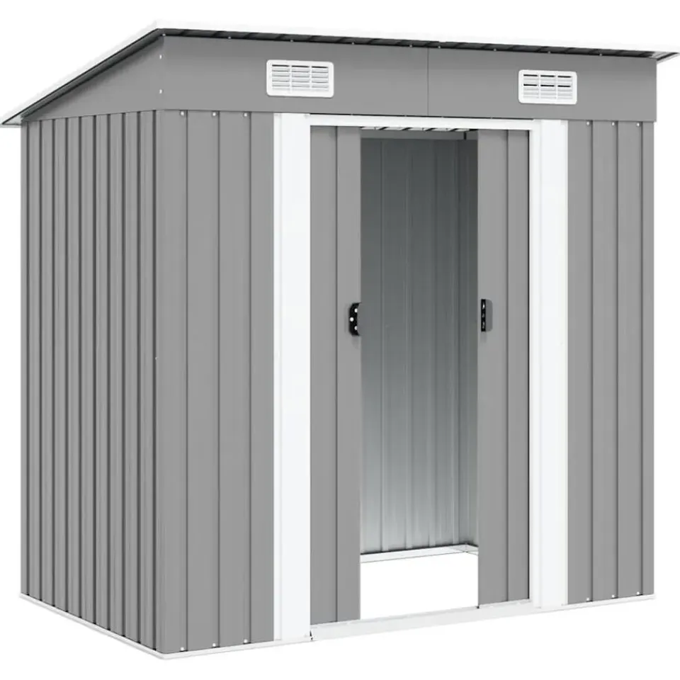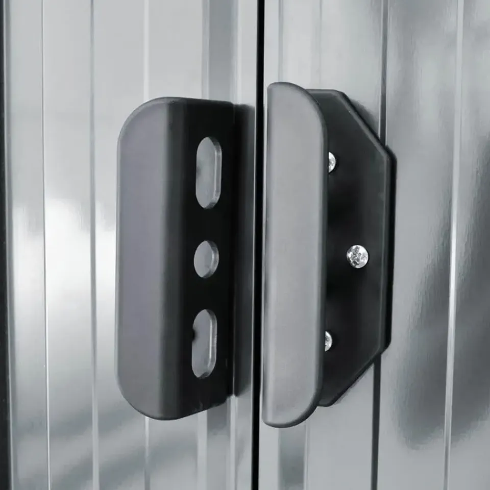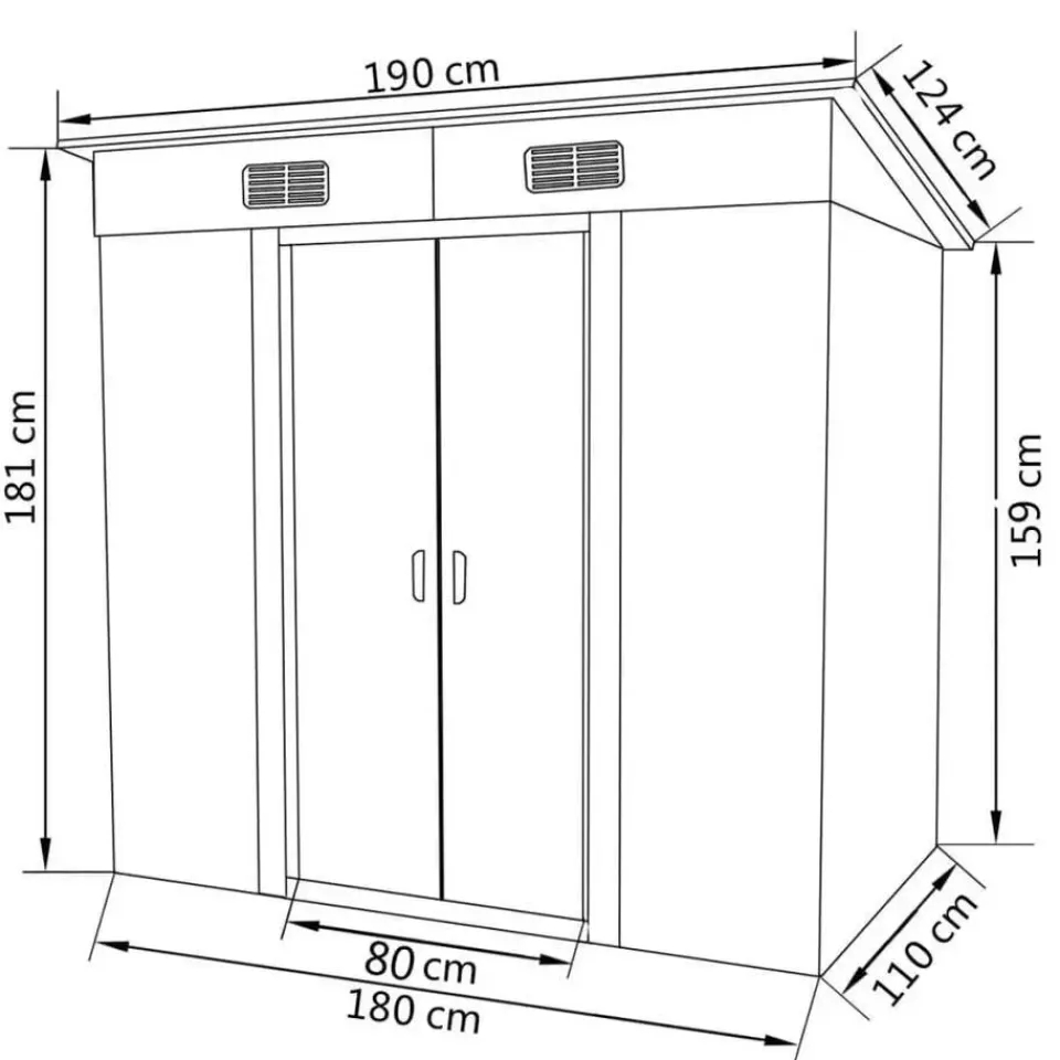 Deze opslagschuur heeft 2 ventilatiegaten aan de voorkant, dit zorgt voor uitstekende ventilatie. De dubbele schuifdeur aan de voorkant zorgt ervoor dat je eenvoudig naar binnen en buiten kunt. De gegalvaniseerde stalen constructie, in combinatie met een verzinkte afwerking maken hem duurzaam en sterk zodat hij niet roest en hij niet wordt aangetast door extreme weersomstandigheden.