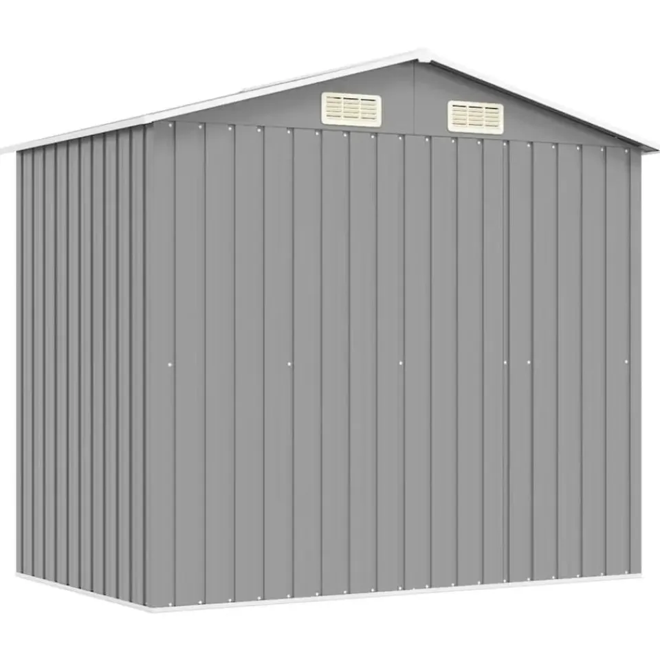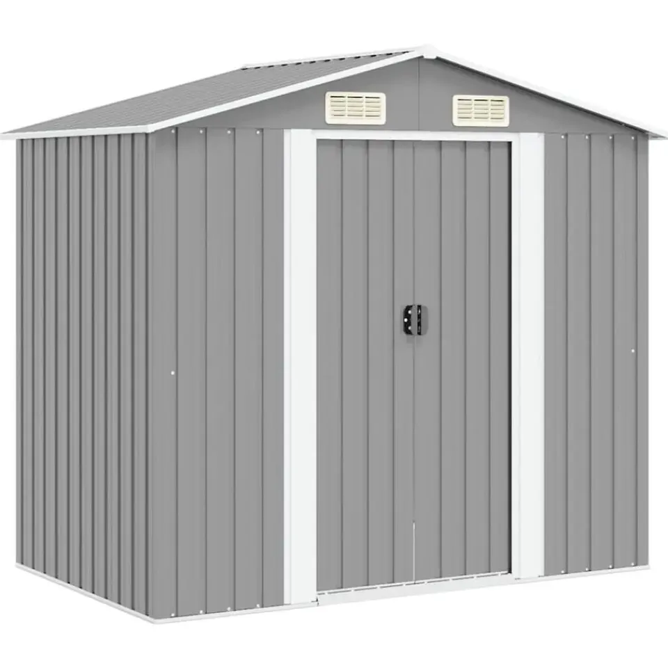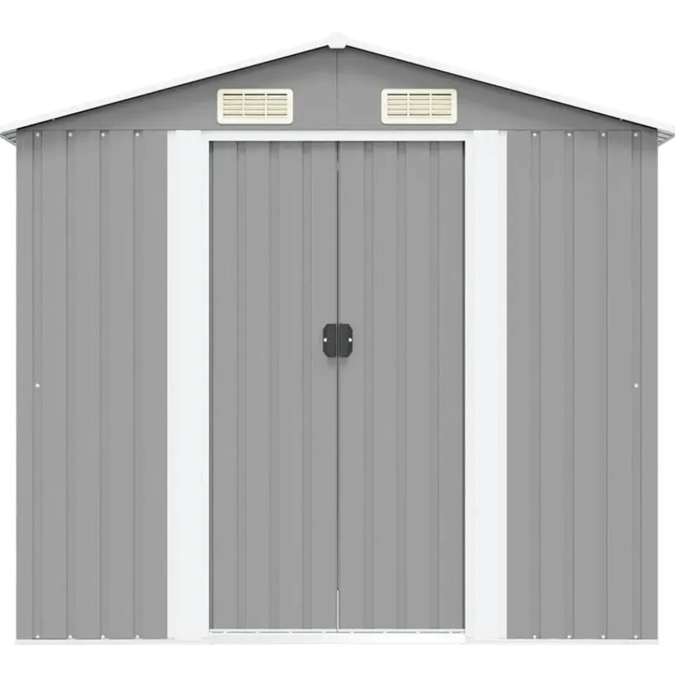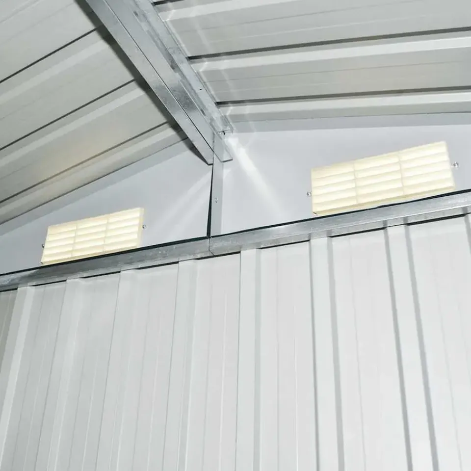 De schuur heeft 4 ventilatiepunten, 2 aan de voorkant en 2 aan de achterkant, waardoor goede ventilatie is gewaarborgd. De dubbele schuifdeur aan de voorkant zorgt ervoor dat je er gemakkelijk in en uit kunt.