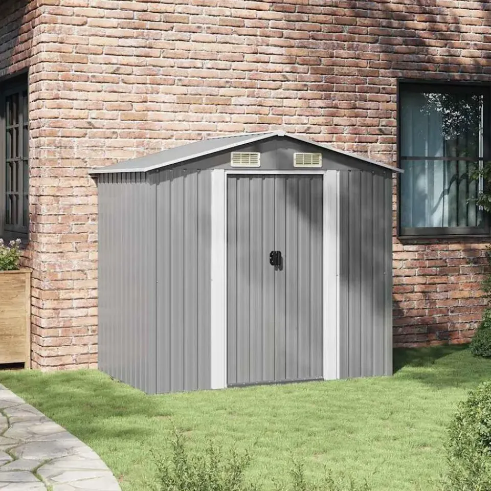 De constructie van verzinkt staal met zinken afwerking maakt de schuur duurzaam en sterk. Hij verroesten niet en wordt niet op een andere manier door extreme weersomstandigheden aangetast. Het schuurtje wordt geleverd met een stalen vloerframe dat extra stabiliteit geeft en perfect is voor een houten vloer (hout niet meegeleverd).