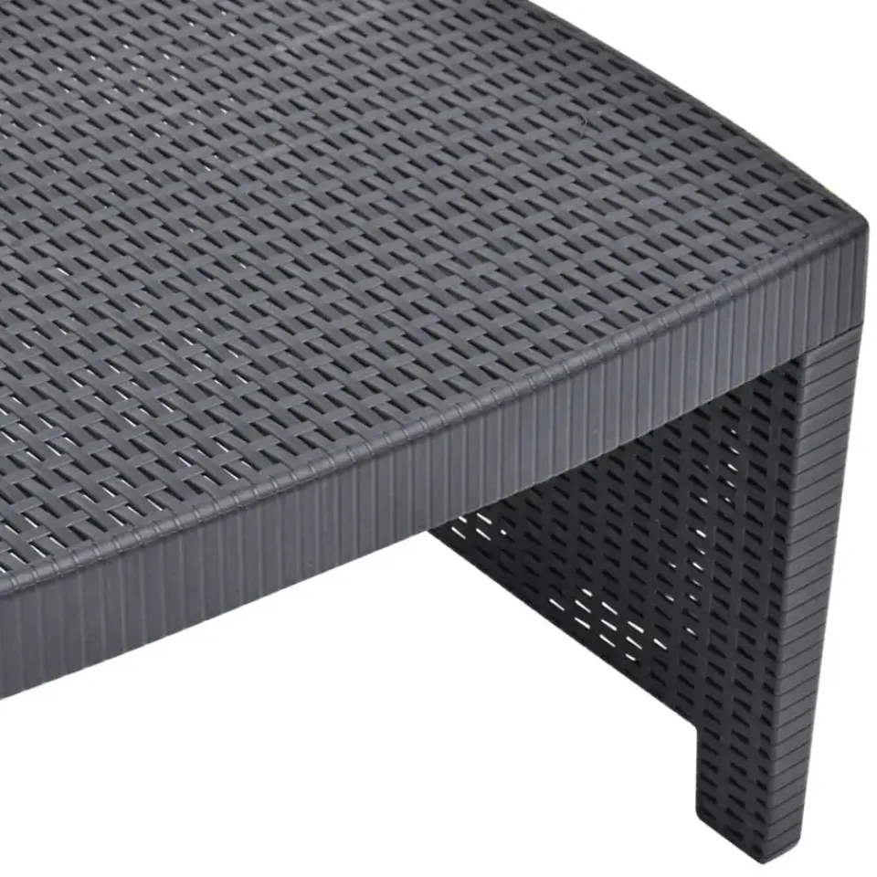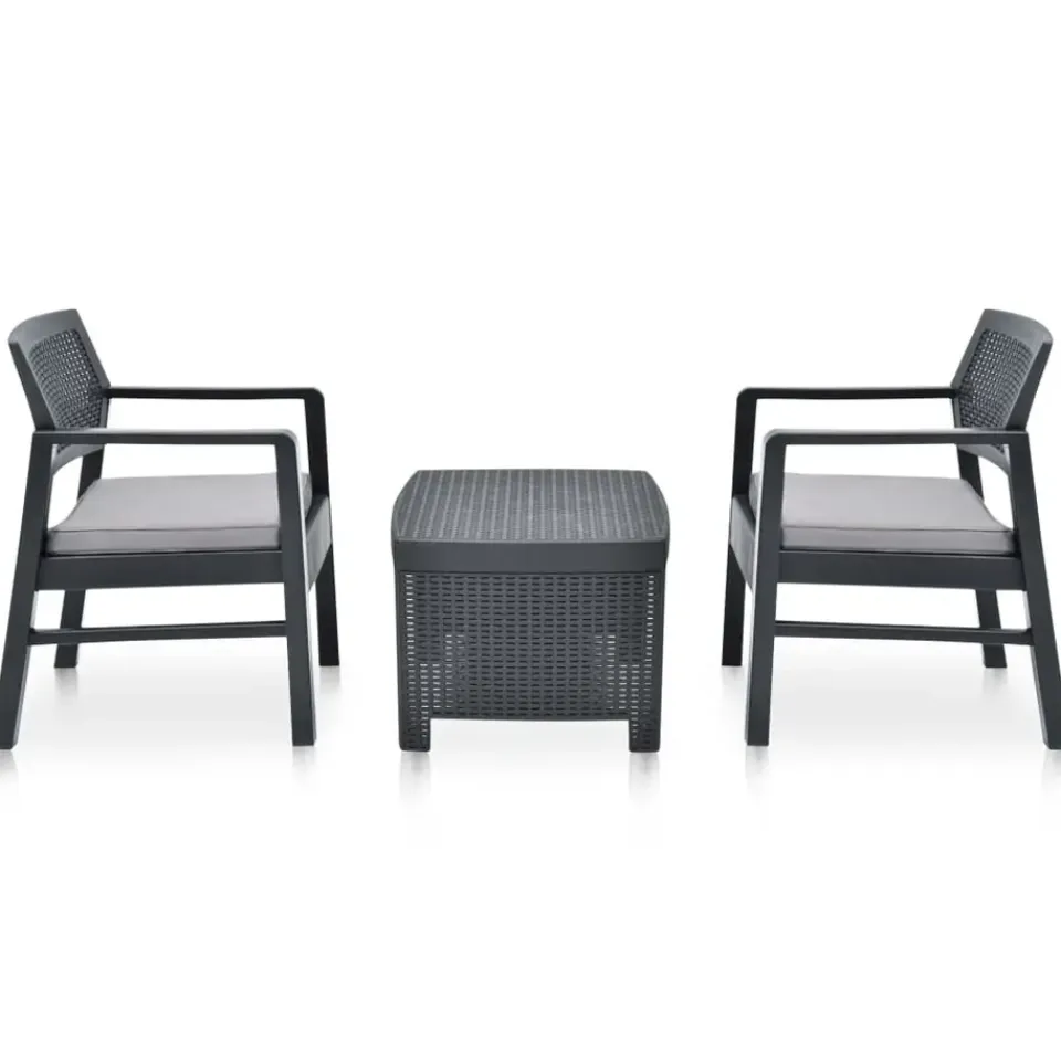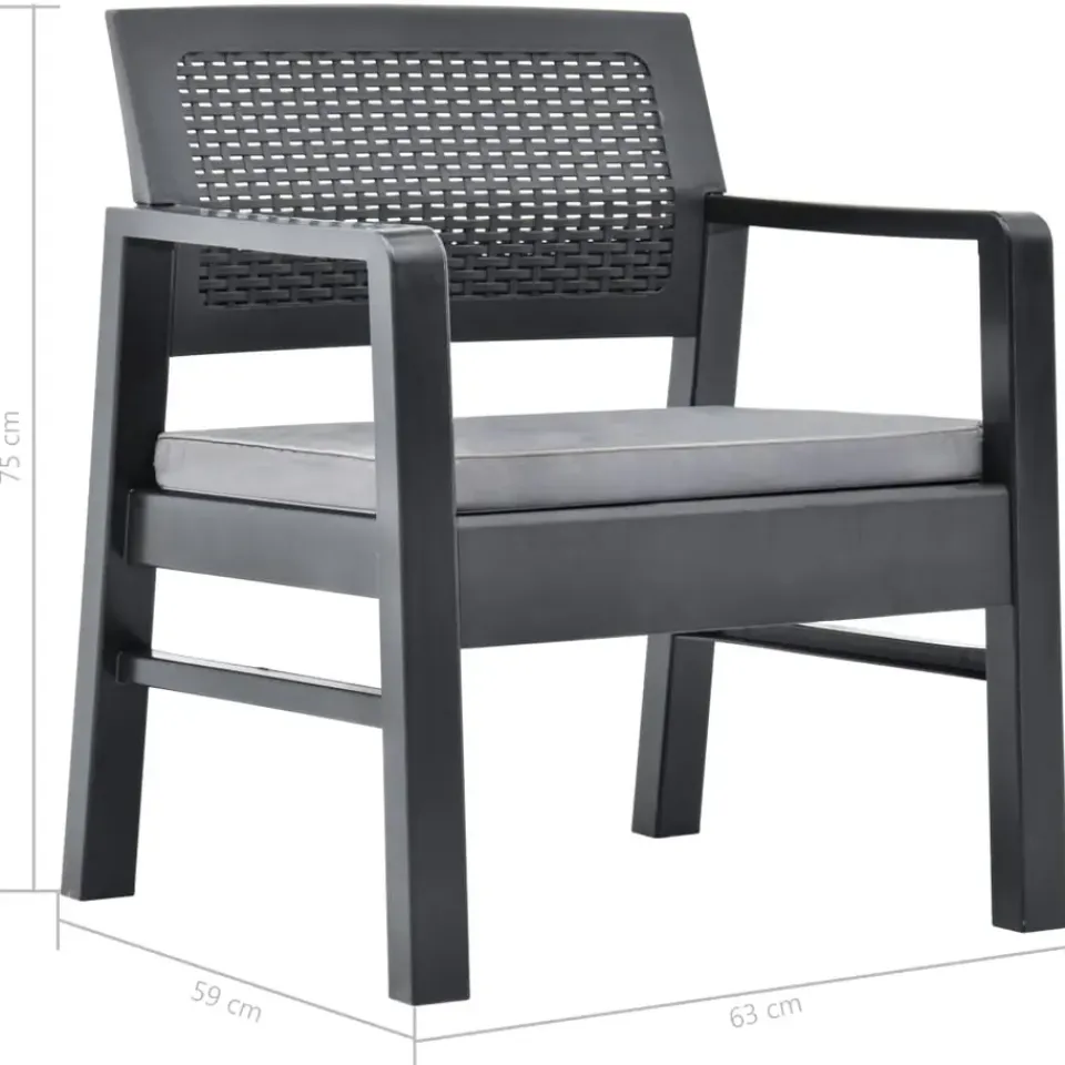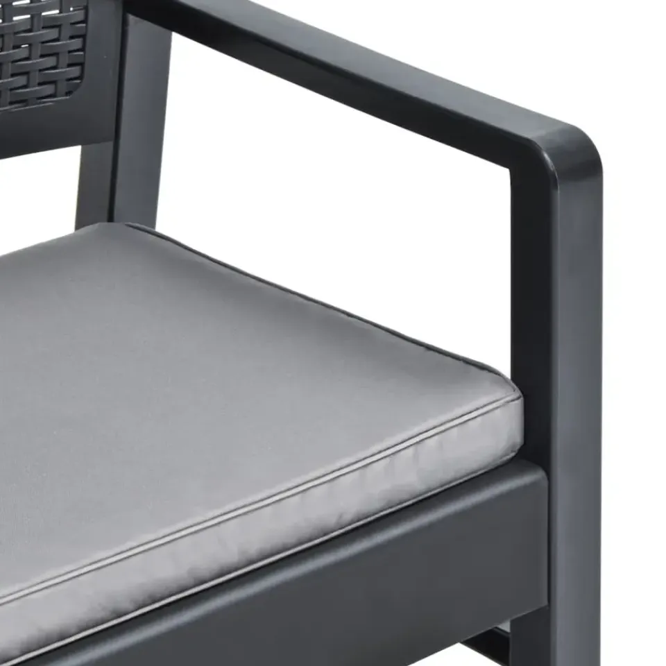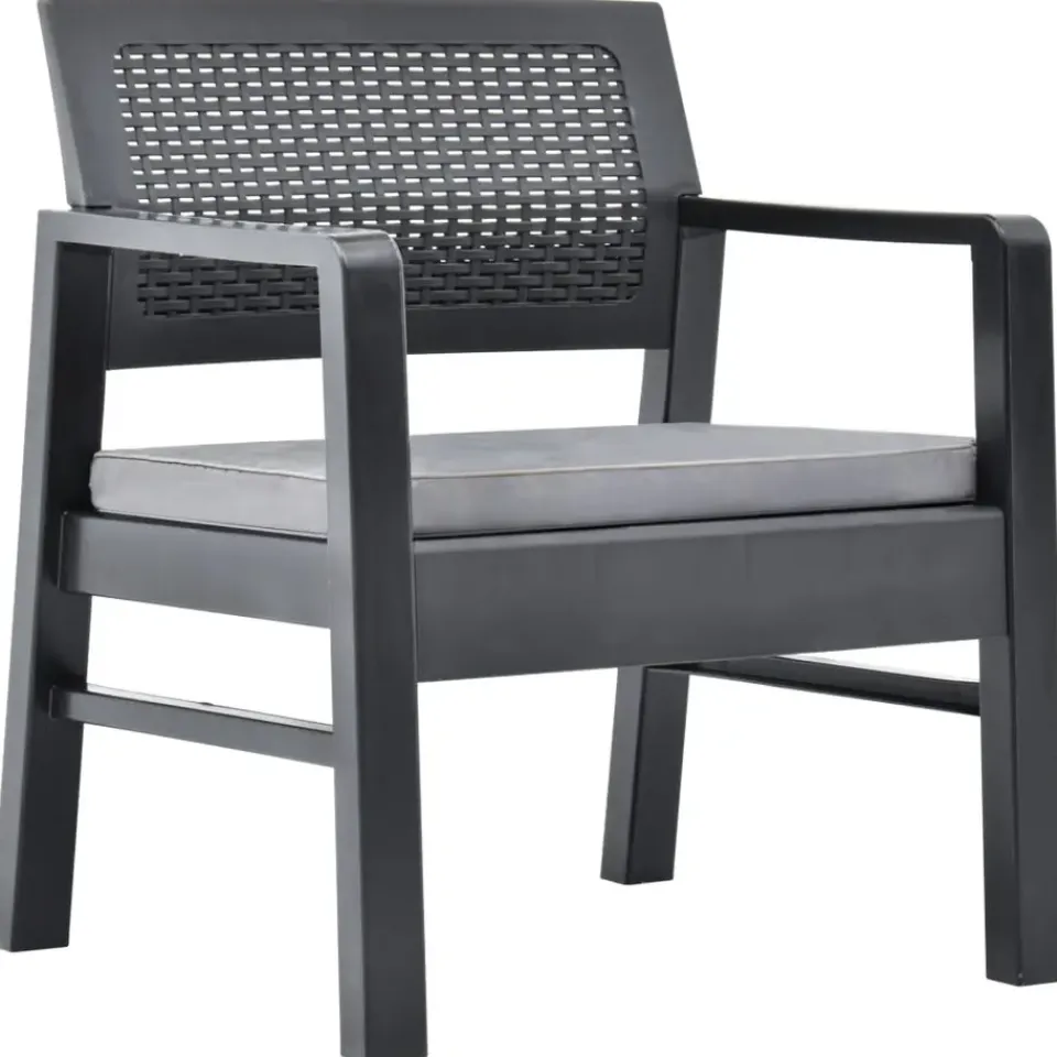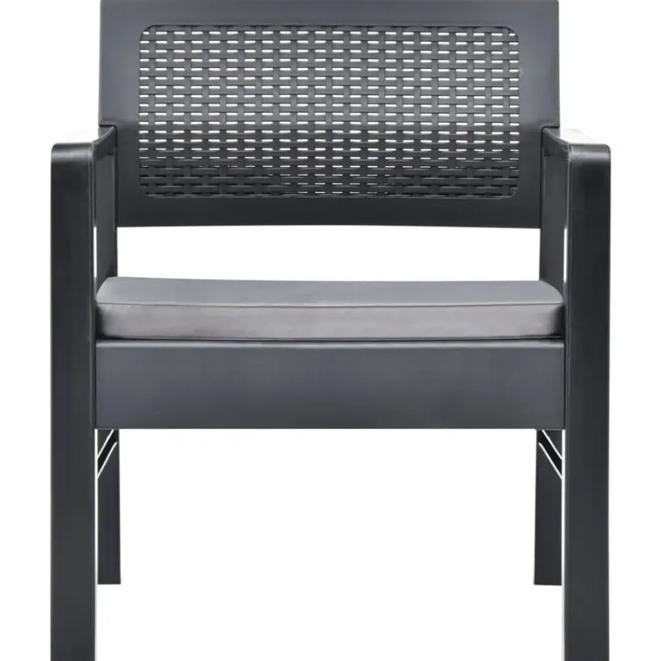 Deze loungeset is geschikt voor buitengebruik dankzij zijn massieve maar toch lichtgewicht kunststof materiaal, dat duurzaam, weerbestendig en gemakkelijk te reinigen is. De zitkussens, gemaakt van polyester, dragen bij aan het comfort van de armstoelen. De tuinmeubelset is eenvoudig te monteren.