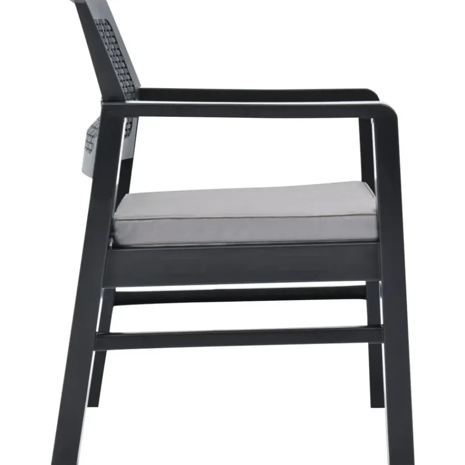 De levering bevat: 1 tafel, 2 armstoelen en 2 zitkussens.