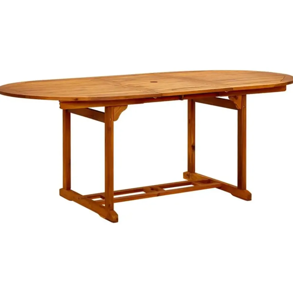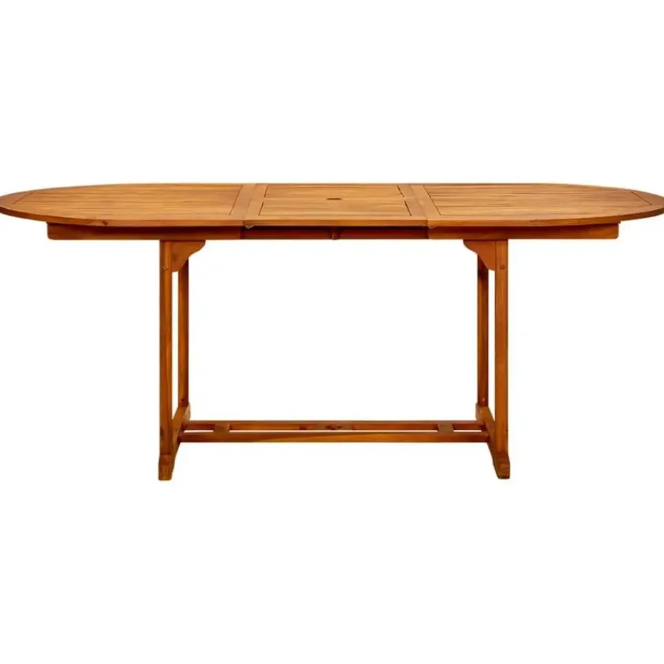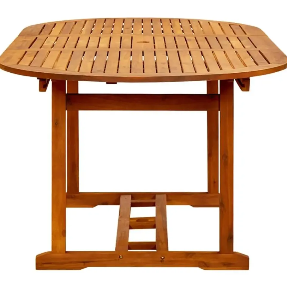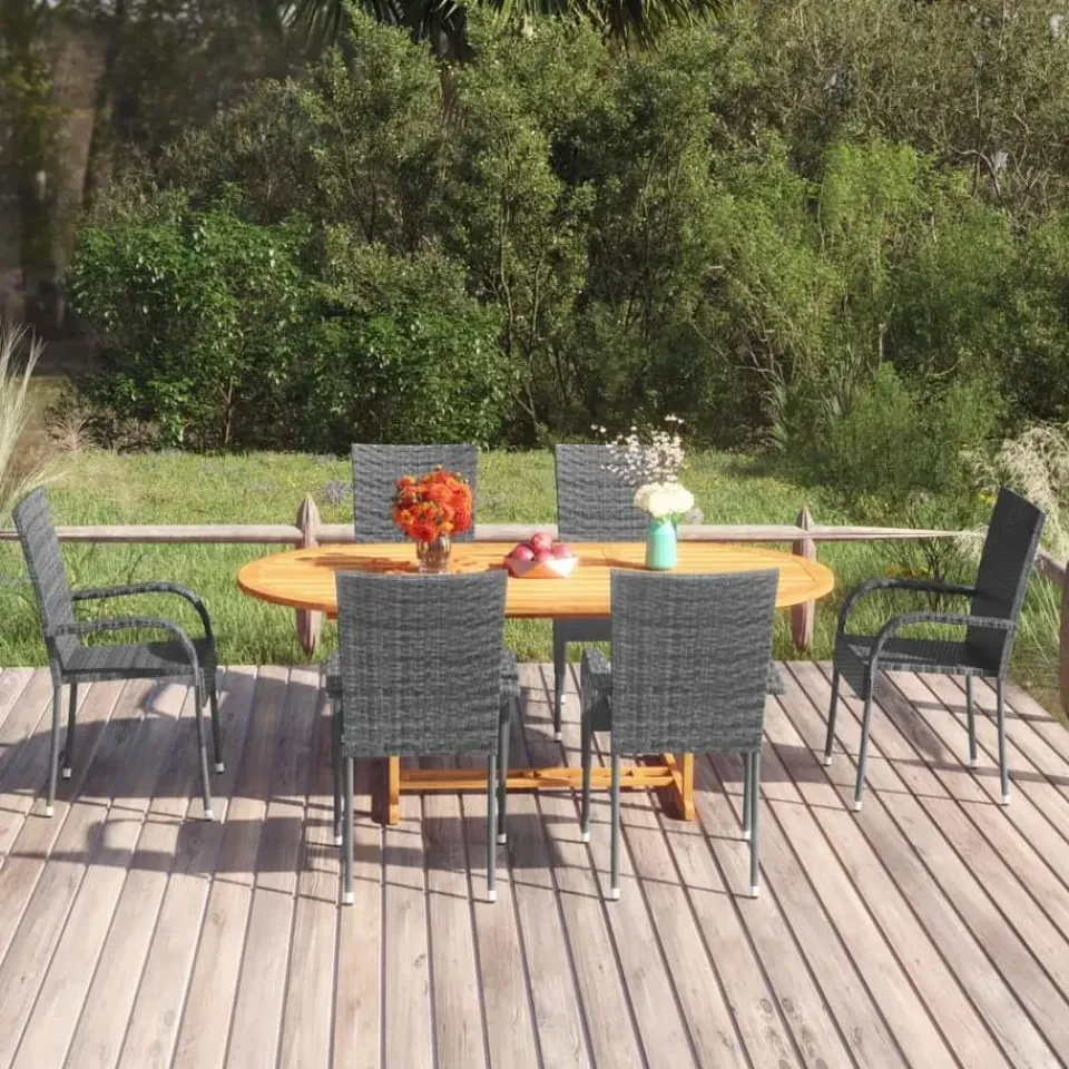 De buitentafel is gemaakt van massief acaciahout, waardoor hij stevig en stabiel is. Het geoliede oppervlak maakt het meubel eenvoudig schoon te maken met een vochtige doek. De eetstoelen hebben een stalen frame bedekt met weerbestendig PE-rattan, waardoor ze stevig en eenvoudig te reinigen zijn. Deze tuinstoelen kunnen gestapeld worden om ruimte te besparen wanneer ze niet gebruikt worden.