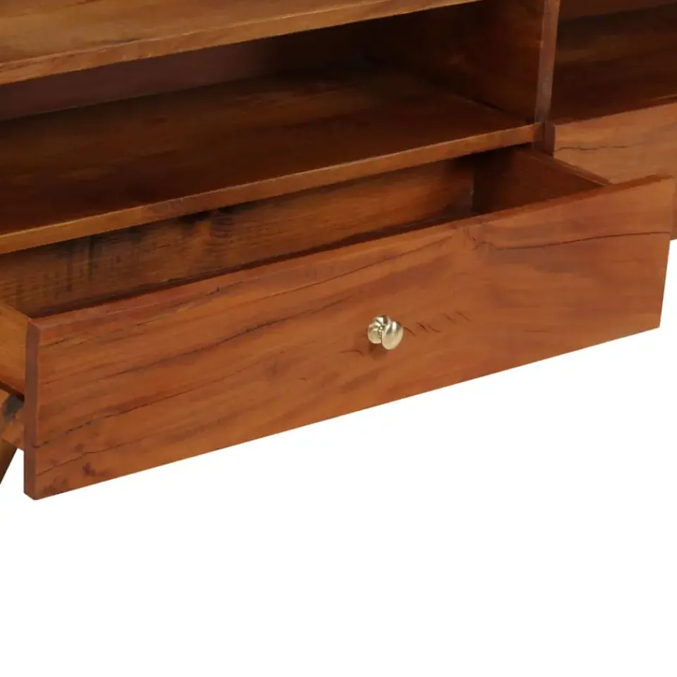 De tv-kast is vervaardigd van massief gerecycled hout dat afkomstig is van dwarsbalken, vloeren en steunbalken van oude, gesloopte gebouwen, en kan bestaan uit grenenhout, teakhout, beukenhout, eikenhout, cederhout, mangohout en acaciahout. Dit betekent dat het hergebruikte hout de karakteristieken van deze verschillende houtsoorten heeft. Gerecycled hout is al gerijpt, verweerd en gedroogd, dus het krimpt niet, buigt niet door en vereist ook geen afwerking. De tekenen van slijtage en de zichtbare nervenstructuur geven elk stuk zijn eigen geschiedenis en unieke uitstraling.