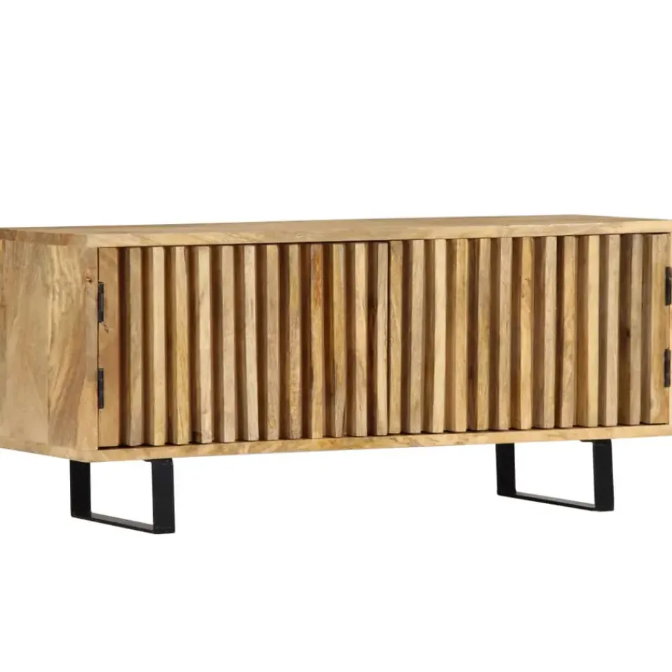 De hifi-kast is gemaakt van massief mangohout, een hardhout met dichte houtnerven. Ruw mangohout heeft niet alleen de kracht om veel gewicht te dragen, maar is ook goed bestand tegen slijtage. Daarom is dit prachtig ontworpen dressoir stabiel, duurzaam en opvallend. Deze stereokast is volledig met de hand gemaakt en het vakmanschap en de esthetisch aantrekkelijke houtnerven maken elk meubel onderscheidend en enigszins anders van elkaar. Het dressoir heeft 1 kast met 2 deuren die voldoende ruimte biedt voor het opbergen van je multimedia-apparaten, boeken en diverse andere spullen.