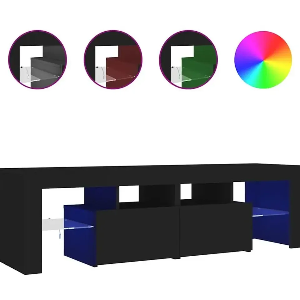 - Kleurrijke LED-verlichting: het tv-meubel beschikt over RGB LED-verlichting die verschillende standen heeft. Je kunt de kleur van de verlichting veranderen en de kleur kan zich automatisch aanpassen. De LED-lampjes onderstrepen het moderne uiterlijk en dragen bij aan een trendy gevoel.