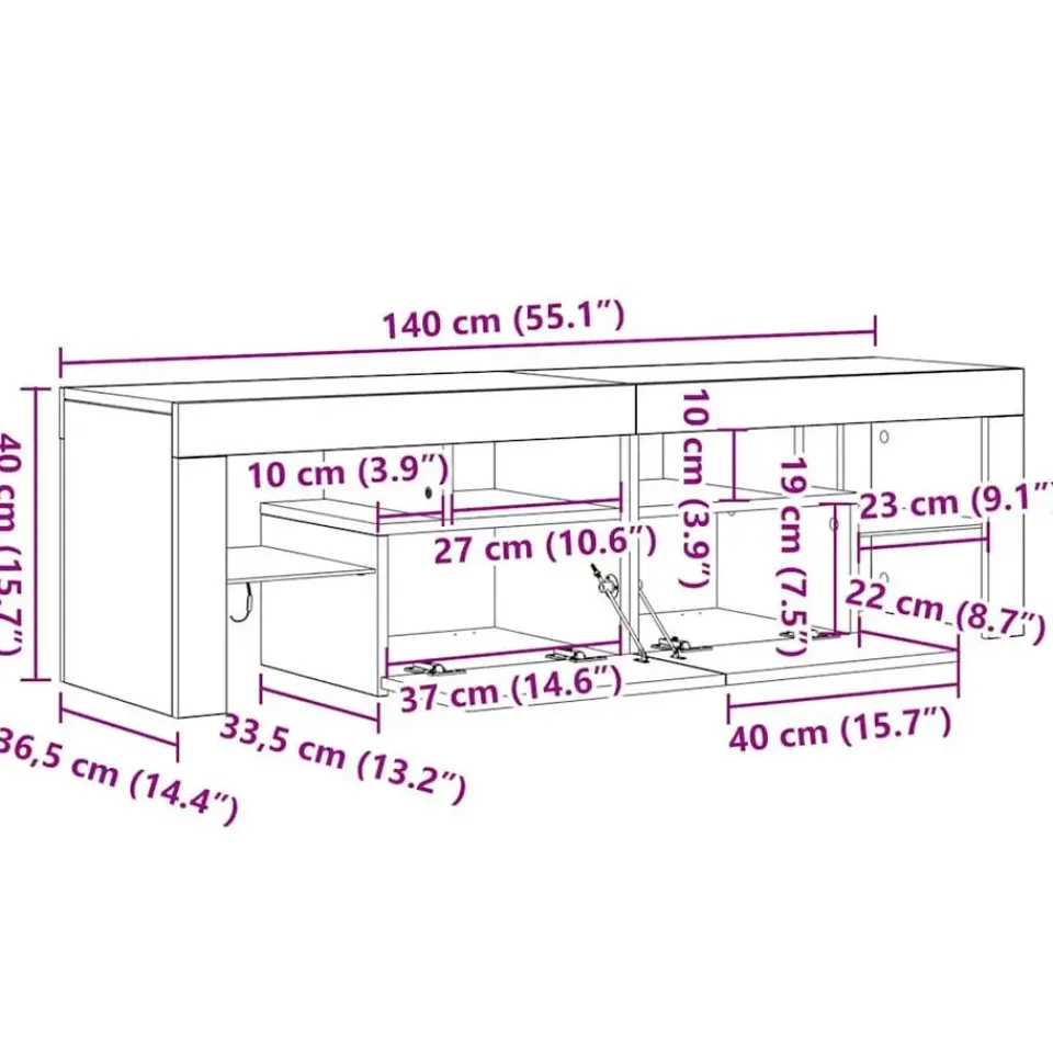 - Afmetingen: 140 x 36,5 x 40 cm (L x B x H)