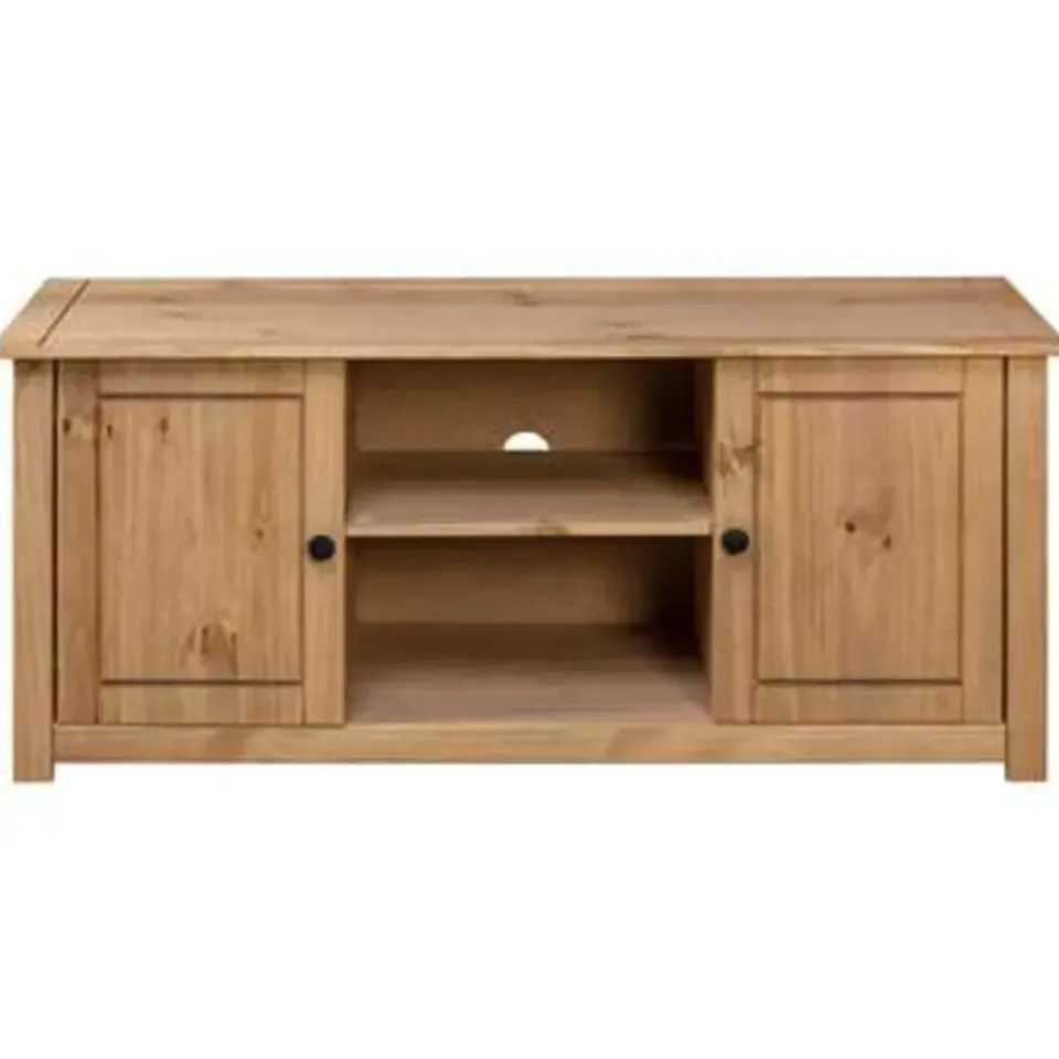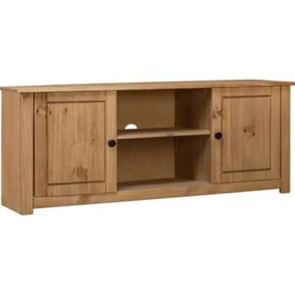 Dit televisiemeubel is gemaakt van massief grenenhout waardoor het zeer stevig en duurzaam is. Het elegante ontwerp maakt van het dressoir een gebruiksvriendelijke en buitengewoon decoratieve toevoeging aan je huis. De stereokast heeft 4 vakken waarvan 2 met deuren, die voldoende ruimte bieden om allerlei kleinere spullen, zoals sleutels, notitieblokken en pennen, georganiseerd en binnen handbereik te houden. Het grote blad is ideaal voor het plaatsen van je televisie, router, multimedia-apparaten en voor het neerzetten van decoratieve voorwerpen.