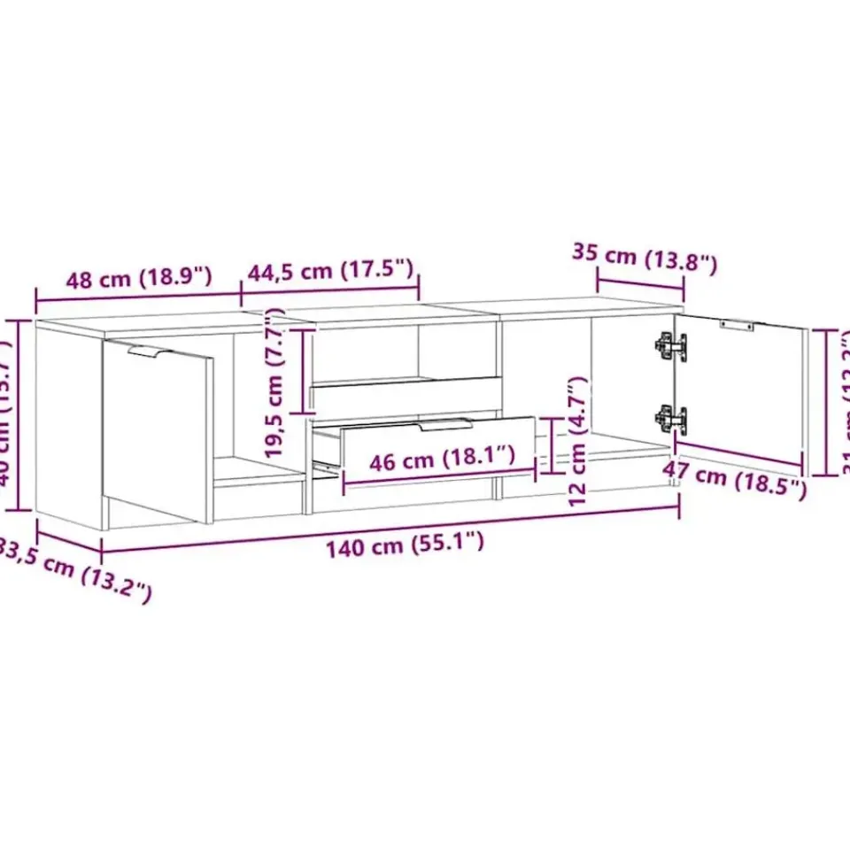 - Makkelijk te onderhouden: Dankzij het gladde oppervlak is het tv-meubel eenvoudig schoon te maken met een vochtige doek en vereist het minder onderhoud.