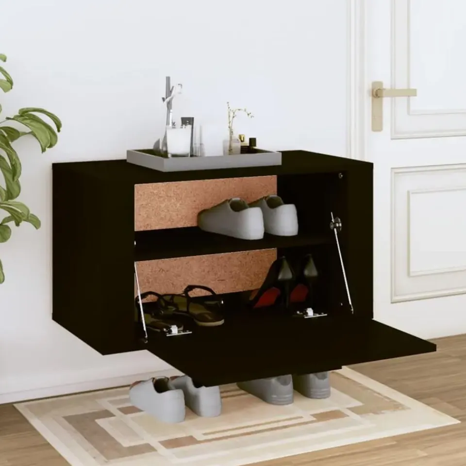 - Voldoende opbergruimte: deze schoenenkast voor aan de muur biedt voldoende opbergruimte om je schoenen binnen handbereik te houden.