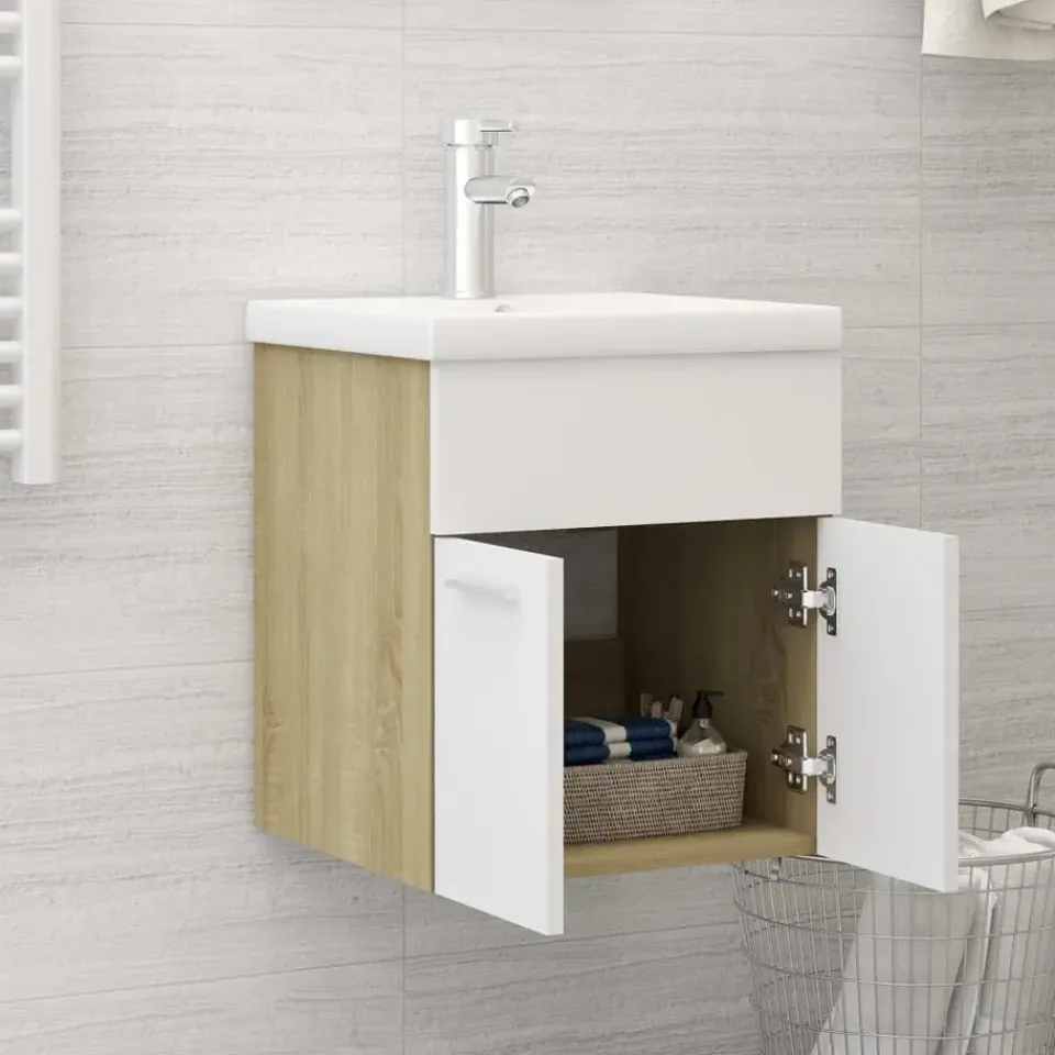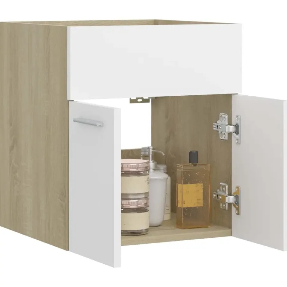 Deze kast is gemaakt van bewerkt hout, waardoor hij stevig en stabiel is. De opbergkast is voorzien van 1 vak en 2 deuren en biedt voldoende opbergruimte om spullen in je badkamer op te bergen. Het blad van het kastje is ideaal om een wasbak te plaatsen. Bovendien is de kast eenvoudig te reinigen met een vochtige doek.