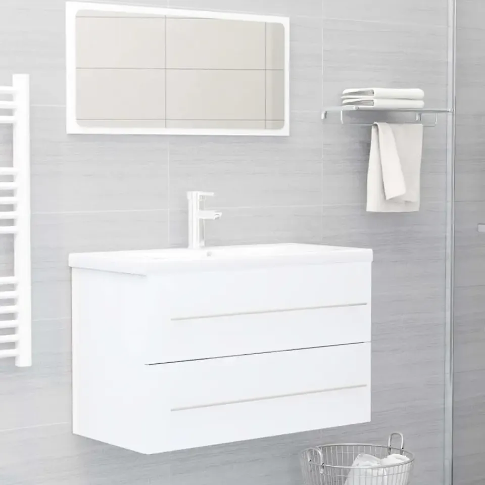 Let op: de wastafel is niet bij de levering inbegrepen. De bovenste handgreep van de kast is alleen voor het ophangen van een handdoek en is niet de handgreep van een lade.