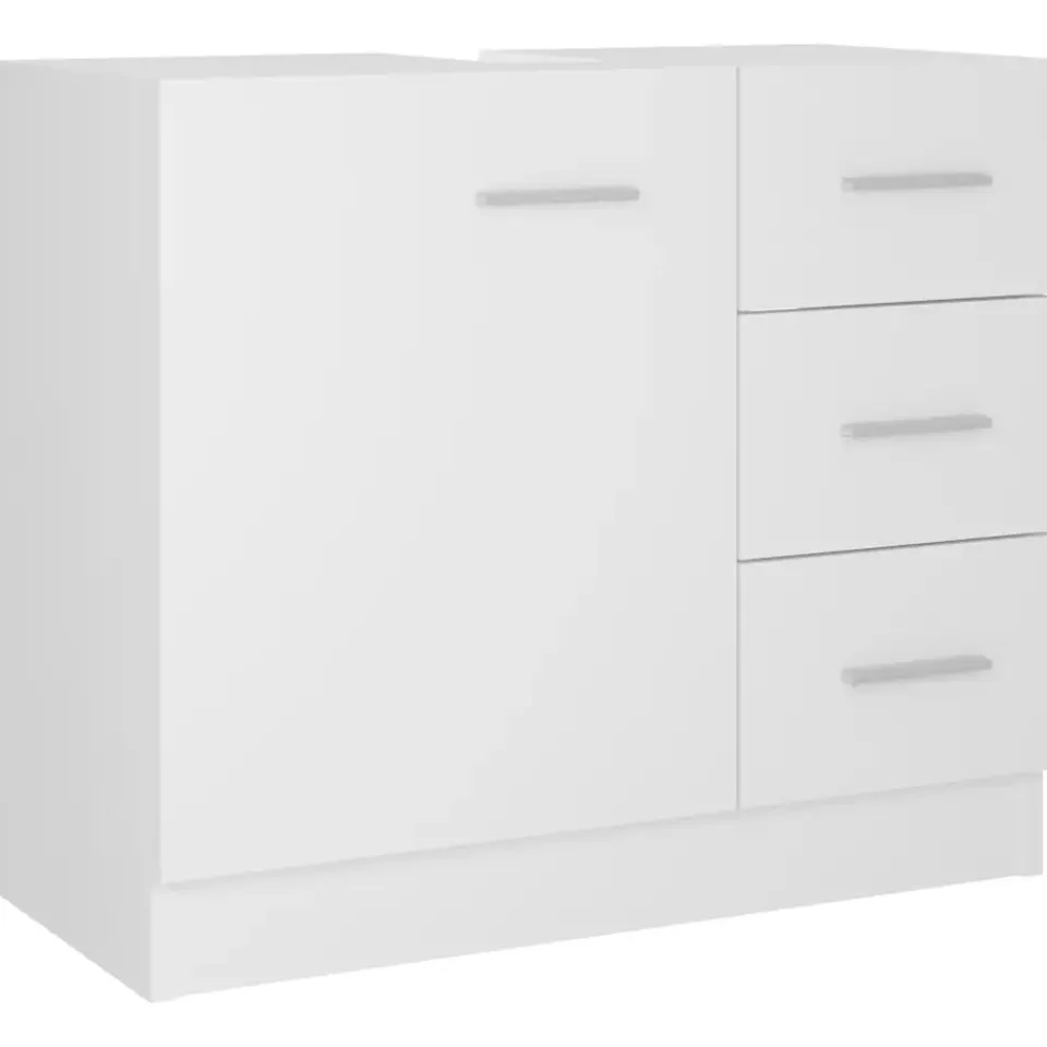 Deze kast is gemaakt van bewerkt hout, waardoor hij stevig en stabiel is. De opbergkast heeft 1 vak en 3 lades, waardoor je verschillende opbergopties en extra ruimte hebt om spullen in je badkamer op te bergen. Het blad van het kastje is ideaal om een wasbak te plaatsen. Bovendien is de kast eenvoudig te reinigen met een vochtige doek.