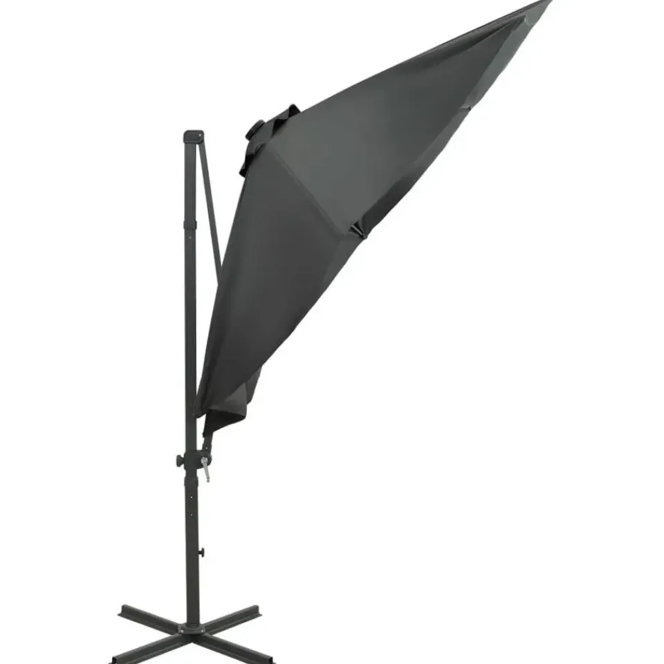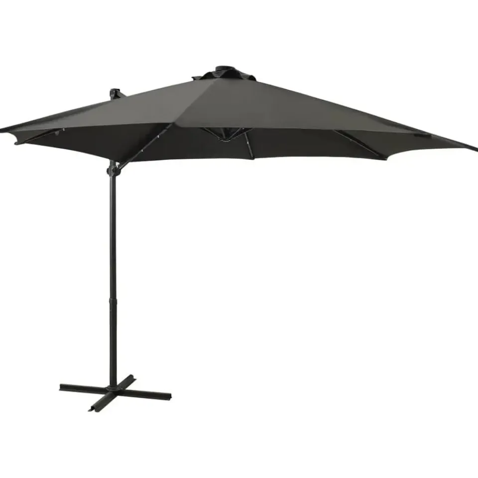 Deze elegante zweefparasol met LED-verlichting is de perfecte keuze om wat schaduw te creëren en jezelf te beschermen tegen de schadelijke uv-straling van de zon. Wanneer de zon ondergaat, verlichten de LED’s je buitenruimte.