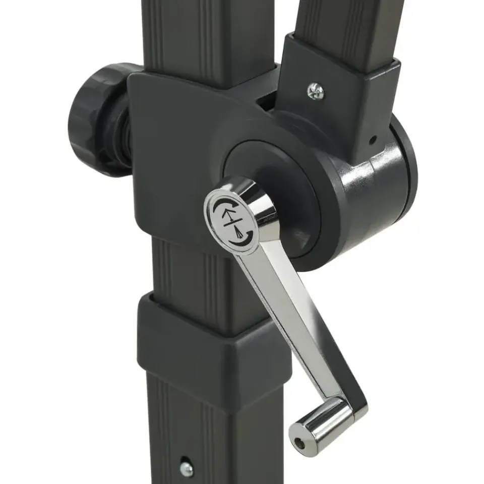 Het parasoldoek is gemaakt van uv-beschermend en anti-vervagend polyester waardoor het je optimale bescherming tegen de zon biedt en het gemakkelijk schoon te maken is. De parasol beschikt over een stevige kruisvoet die bijdraagt aan de stabiliteit. Het exclusieve ontwerp van de parasol stelt je in staat om de parasol te kantelen en 360 graden te draaien om zo de zon te kunnen blokkeren. De sterke aluminium paal, samen met de 8 baleinen, maakt de parasol zeer stabiel en duurzaam. Deze tuinparasol kan eenvoudig geopend en gesloten worden dankzij het zwengelmechanisme. De parasol heeft 24 LED’s die, na zonsondergang, je buitenruimte verlichten en een comfortabele, romantische sfeer creëren.