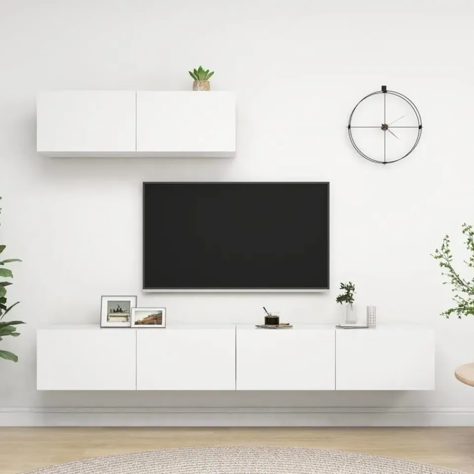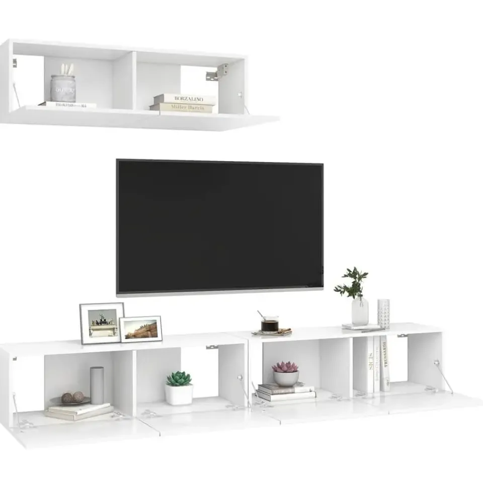 De tv-meubelset wordt aan de muur bevestigd, waardoor hij een tijdloze aanvulling op je woning is. Hij is ideaal om al je spullen overzichtelijk en binnen handbereik te plaatsen en op te bergen. Daarnaast is de stereokast eenvoudig schoon te maken met een vochtige doek.