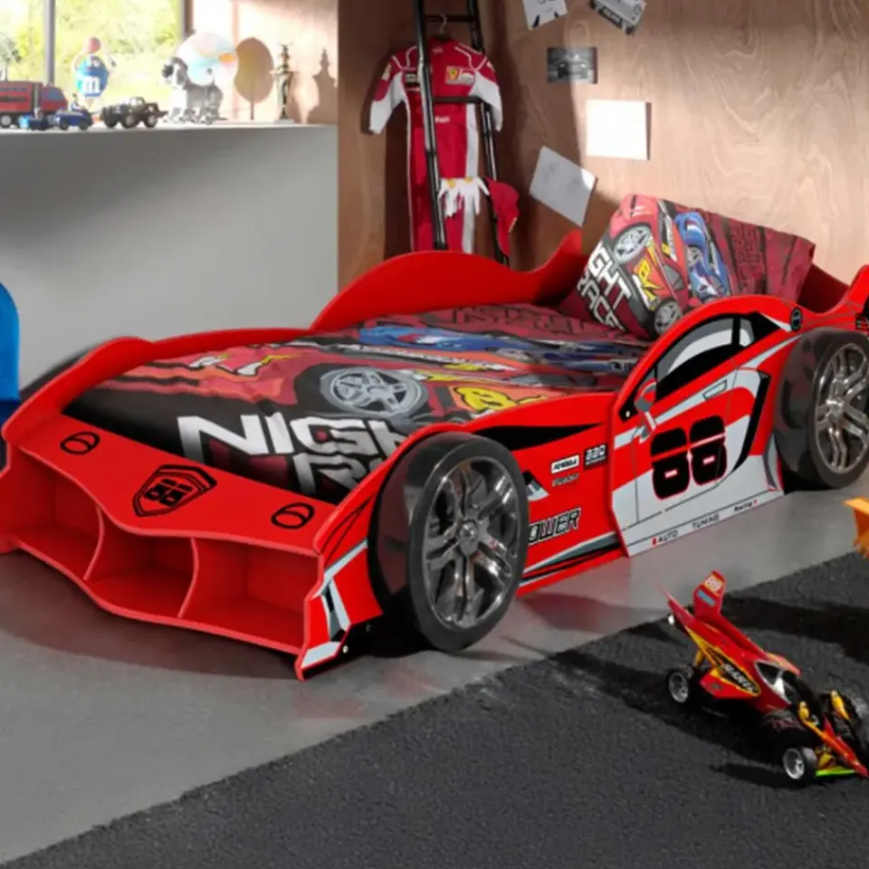 Het Max autobed 90×200 cm is een stijlvolle en leuke toevoeging aan elke kinderkamer. Met zijn strakke Belgische design is dit bed niet alleen een comfortabele slaapplek voor je kind, maar ook een speels middelpunt in de kamer. De afmeting van het bed van 90×200 cm is perfect voor opgroeiende kinderen, zodat ze genoeg ruimte hebben om zich uit te rekken en te ontspannen. Vooraan zijn drie open opbergvakken voorzien voor bijvoorbeeld boeken of speelgoed. Met zijn duurzame constructie uit MDF en opvallende ontwerp zal het Max autobed zeker in de smaak vallen bij zowel kinderen als ouders. Voeg vandaag nog wat spanning toe aan de slaapruimte van je kind met dit unieke en functionele bed!