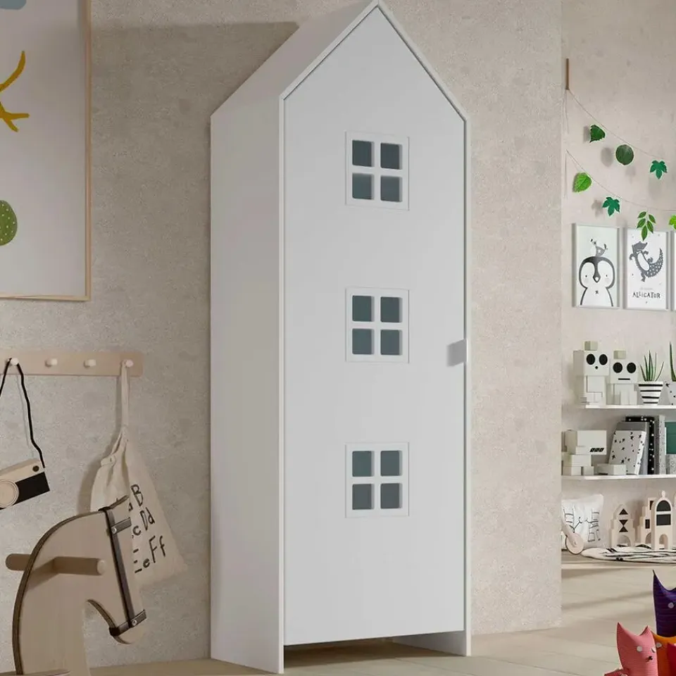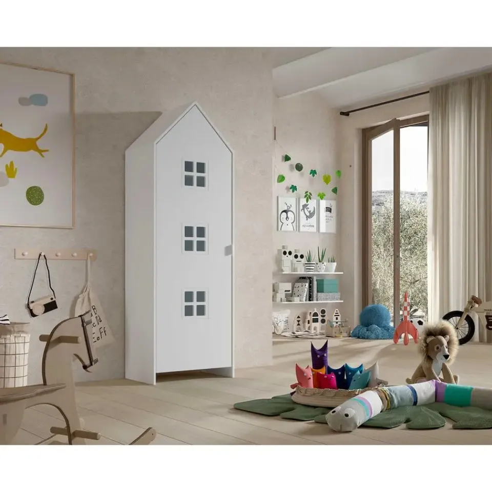 Haal een speelse sfeer in de kinderkamer met de kledingkast Casami Bruges. Voor het design van de kledingkast inspireerde de fabrikant zich op de typische Brugse rijhuizen. Hierdoor krijgt de kast een speelse en kleurrijke toets, wat het uitermate geschikt maakt voor een kinderkamer. Achter de deur is de kast uitgerust met drie legplanken en een kledingroede. De kasten Casami zijn beschikbaar in verschillende uitvoeringen en kleuren. Kies jouw favoriet of combineer ze voor een speelse look.
