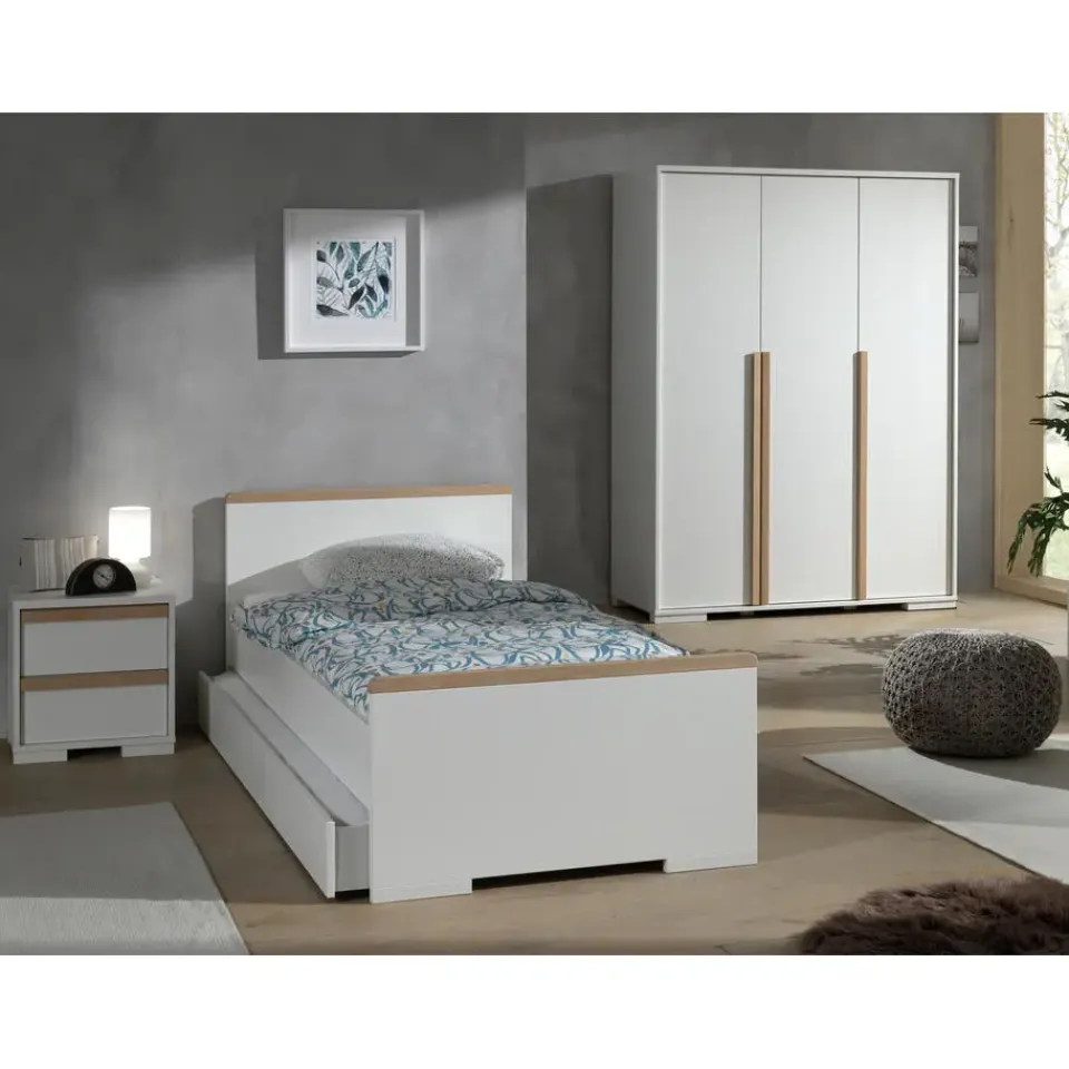 Deze stijlvolle, witte kledingkast uit de London-reeks van het merk Vipack is gemaakt van hoogwaardig spaanplaat en is erg stevig. Achter de dubbele deuren van de kast beschik je over een kledingroede en 2 verstelbare legplanken om je kledij op te bergen (binnenafmetingen D 53 x L93 cm). Aan de rechterkant zijn er 5 vakken met verstelbare schappen (binnenafmetingen L 45 x D 50 cm). De lange, verticale handgrepen uit massief beukenhout maken het makkelijk om de kast te openen en sluiten en zorgen voor een warme toets.