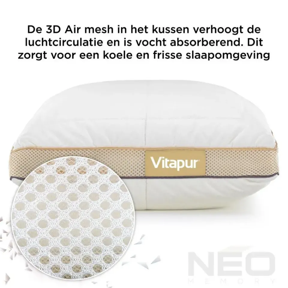 Traagschuim heeft uitstekende druk-regelende- en druk-reagerende eigenschappen. De traagschuimcubes zorgen ervoor dat de druk gelijkmatig wordt verdeeld over het hele oppervlak van het hoofd van uw kind zodat uw kleintje lekker en prettig ligt. Dit traagschuim wordt exclusief voor het NEO-kussen gesneden want alleen de juiste vorm en grootte van de cubes geven het de juiste functionaliteit om ervoor te zorgen dat uw kind in de ochtend blij en uitgerust wakker wordt. De AirMesh-stof aan de zijkant zorgt voor een optimaal ademend vermogen van het kussen en voorkomt dat uw kind gaat zweten tijdens het slapen.