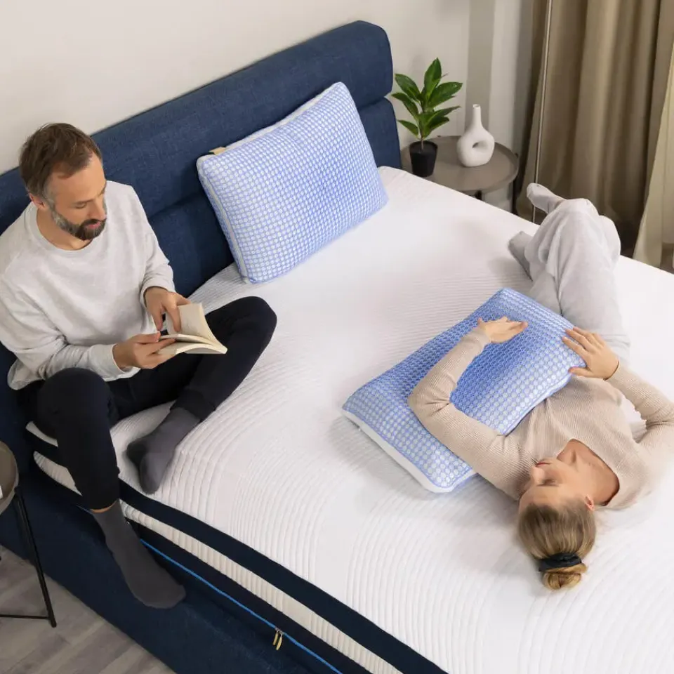De dunne bovenhoes zorgt ervoor dat je het 3D-reliëf van het MemoGel-materiaal niet voelt als je op het kussen ligt. Het materiaal is ademend en wasbaar, voor een hygiënischer slaapoppervlak.