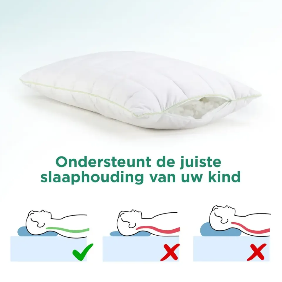 Maak kennis met het nieuwe kussen dat speciaal voor kinderen is ontworpen! We hebben een speciale, superzachte vulling ontwikkeld om een kussen te creëren dat kleiner en lichter is en uw baby helpt om heerlijk te slapen en uit te rusten. Kinderen worden minder wakker, zijn uitgeruster en hebben meer energie.