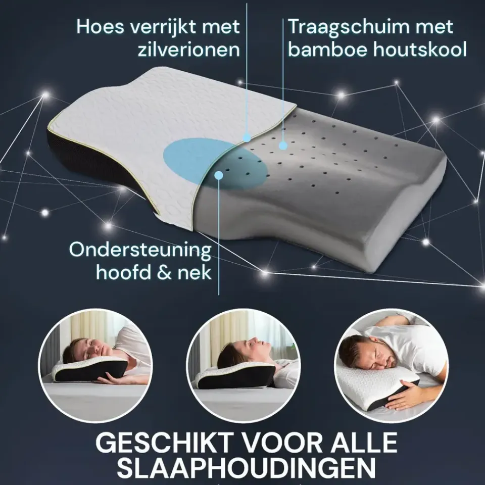 - Innovatief traagschuim volgt de natuurlijke curve van je nek, helpt rugpijn voorkomen