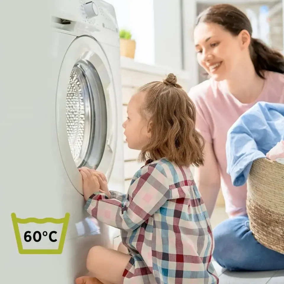 Het kussen is in zijn geheel geschikt voor de wasmachine tot 60°C en kan ook in de droger. Dit kussen is OEKO-TEX® gecertificeerd.
