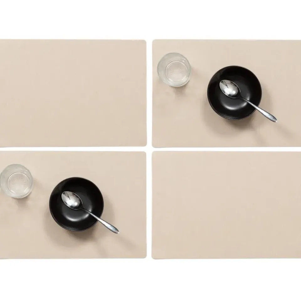 Breng kleur en stijl op tafel met deze stevige luxe placemats Plain in de kleur beige. De placemats zijn uitgevoerd in katoen/polyester en afgewerkt met een Teflon coating, waardoor ze water- en vlekbestendig zijn. Dankzij de antislip laag blijven ze netjes op hun plaats liggen, ideaal voor dagelijks gebruik tijdens ontbijt, lunch of diner.
