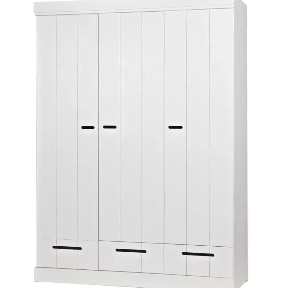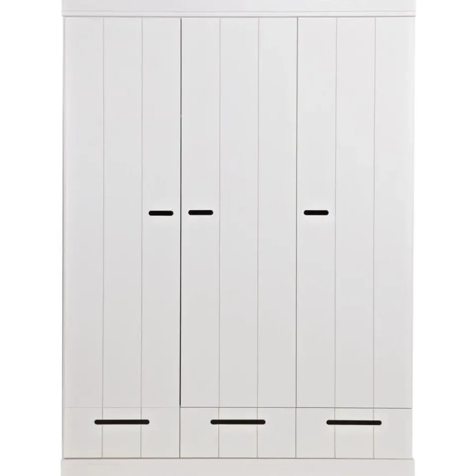 Deze stoere basic kast komt uit de collectie van WOOOD. De 3-drs kast met 3 handige lades zijn voorzien van stevige, metalen ladegeleiders. De romp van de kast is gemaakt van massief grenenhout en de binnenzijde is voorzien van melamine legplanken, praktisch met schoonmaken!