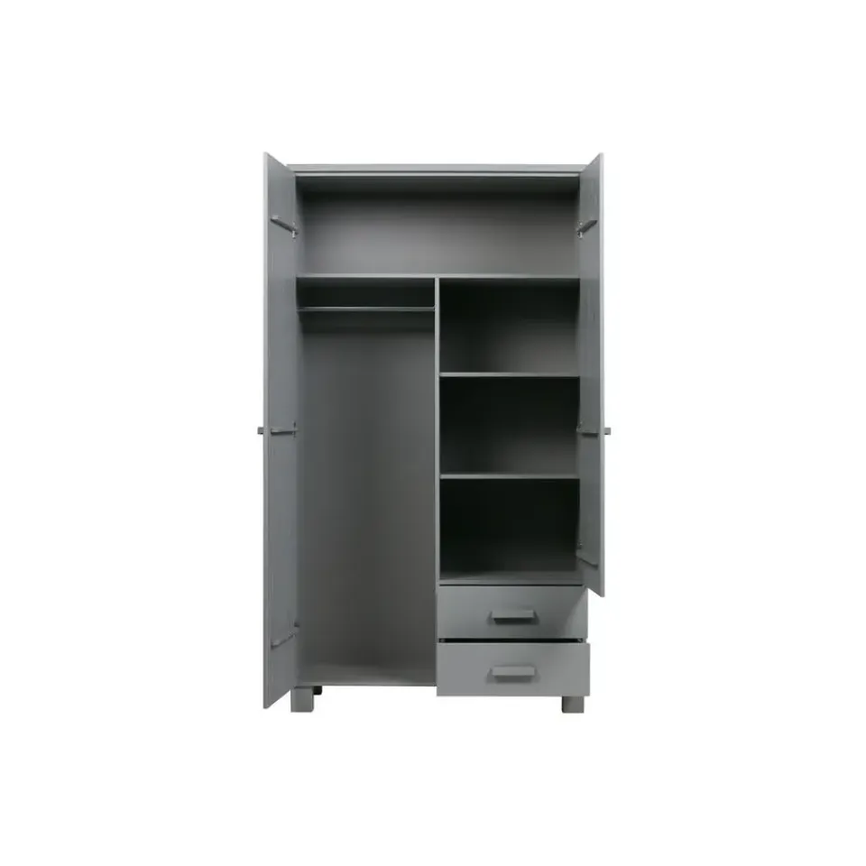 Deze stoere kast komt uit de collectie van WOOOD. De robuuste hang/leg kast heeft een geborstelde afwerking en is gespoten met een watergedragen verf. Het interieur van de kast is van melamine en bevat een brede legplank bovenin. Links bevindt zich een gedeelde roede en rechts drie legplanken, perfect voor veelzijdige opslag. Dankzij de doorleefde uitstraling van het grenenhout is elk exemplaar uniek!