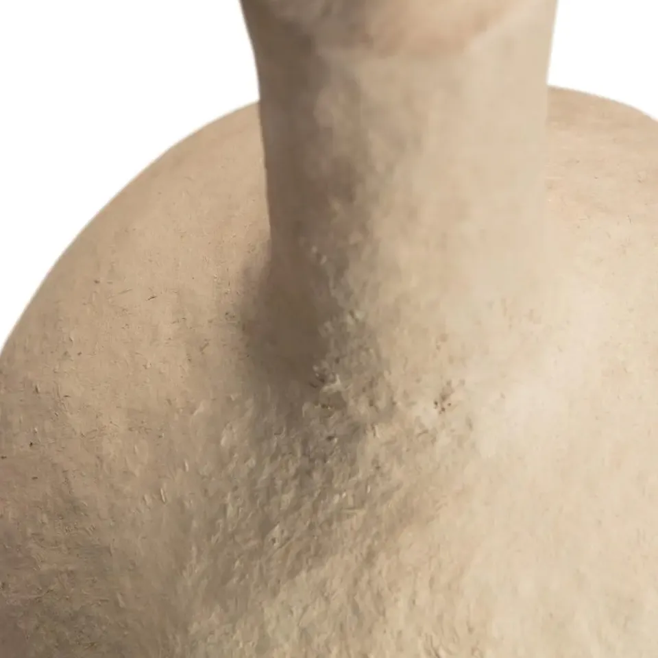Papier-maché is een ambachtelijke vormgevingskunst op basis van papier en lijm. De papier-maché items uit onze collecties zijn samengesteld met 100% gerecycled karton en papier en heeft in de basis een lichtbruine tint. De papier-maché items kunnen met een natuurlijk pigment omgekleurd worden naar wit of een donkerdere grijs/bruin tint.