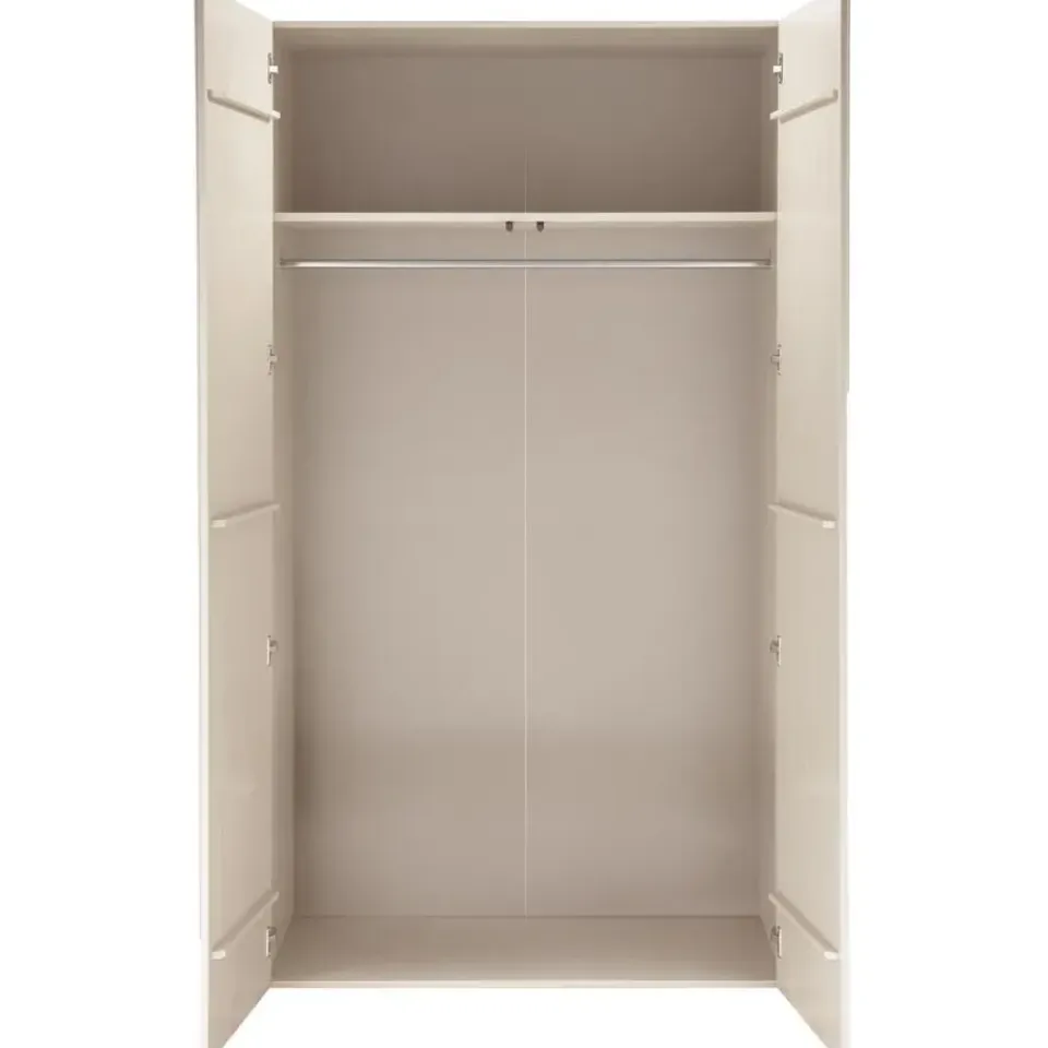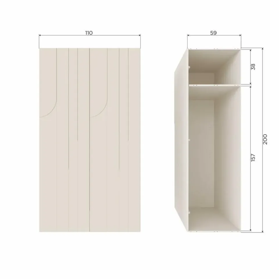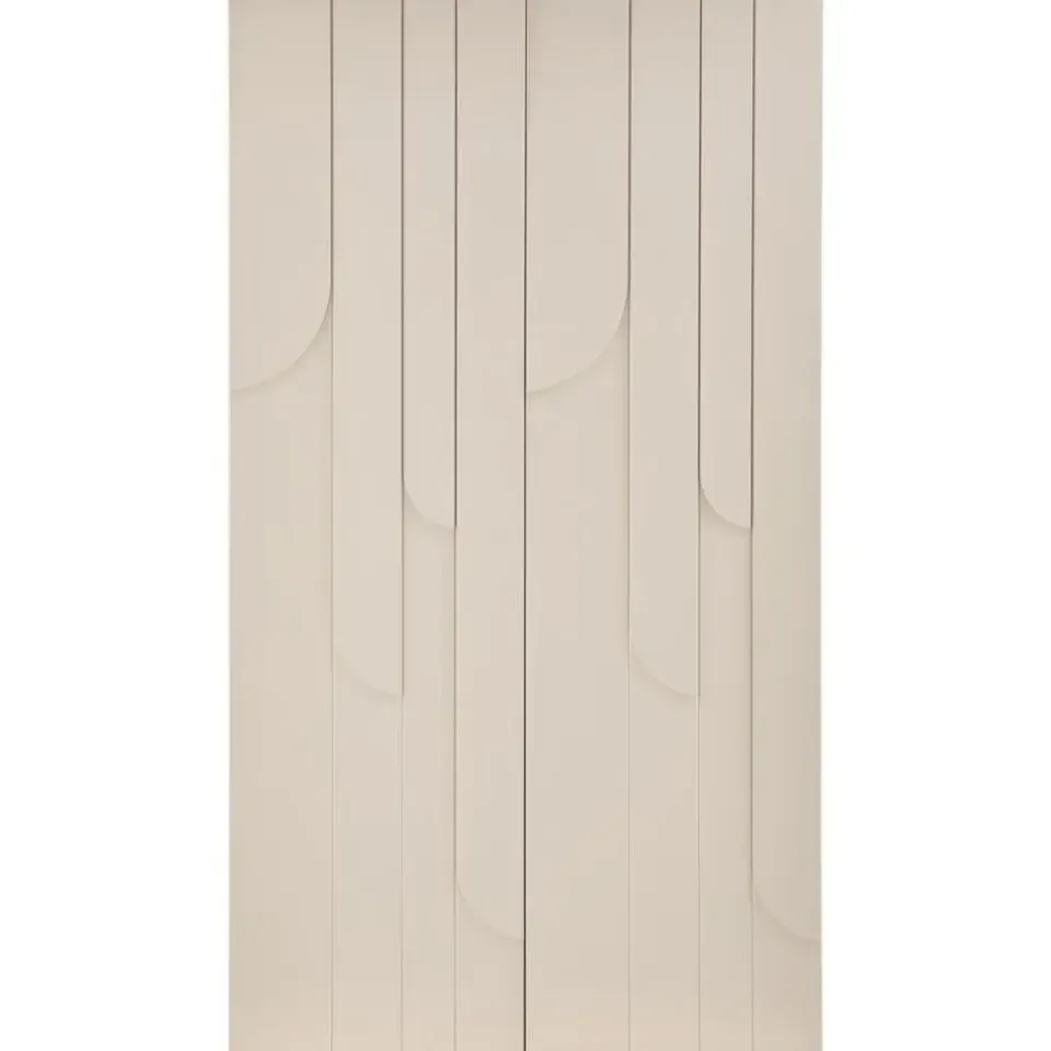 Het golvende patroon van regendruppels die langs de ramen naar beneden stromen, was de inspiratiebron voor het houtsnijwerk op de deuren van deze Rain 2-deurs kledingkast uit de collectie van het Nederlandse interieurmerk WOOOD. De stevige kast, gevormd uit grenenhout en afgewerkt in de kleur dust, combineert stijlvol en modern design.