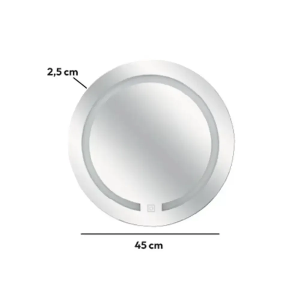 5Five Badkamer wandspiegel met een rand van LED licht. Deze wandspiegel werkt op batterijen. Kleur: zilver. De afmetingen van de buitenmaat zijn Dia 45 cm. Vorm: rond. Makkelijk op te hangen. Schakelaar op het artikel. Werkt op 3x AA batterijen, welke niet zijn inbegrepen.