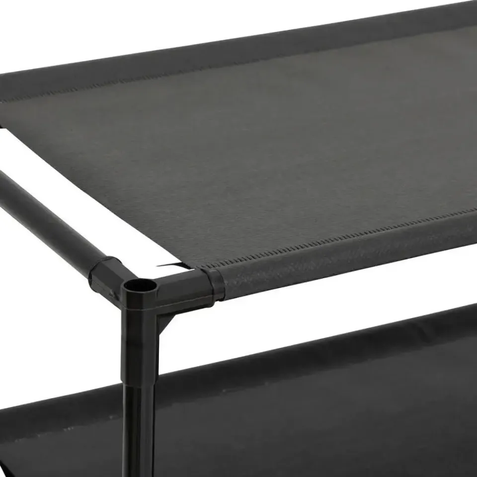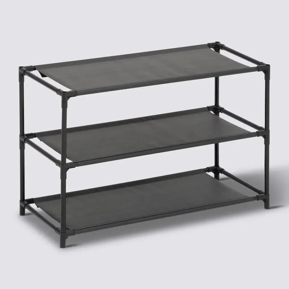 Schoenenrek Intissa 3-laags rekje met ruimte voor ongeveer 9 paar schoenen. Gemakkelijk in elkaar te zetten, wordt geleverd inclusief gebruiksaanwijzing. Formaat: ca. 57 x 25 x 39 cm. Materiaal: metaal met kunststof. Netjes je schoenen stapelen met dit voordelige rekje. In de kleur zwart.