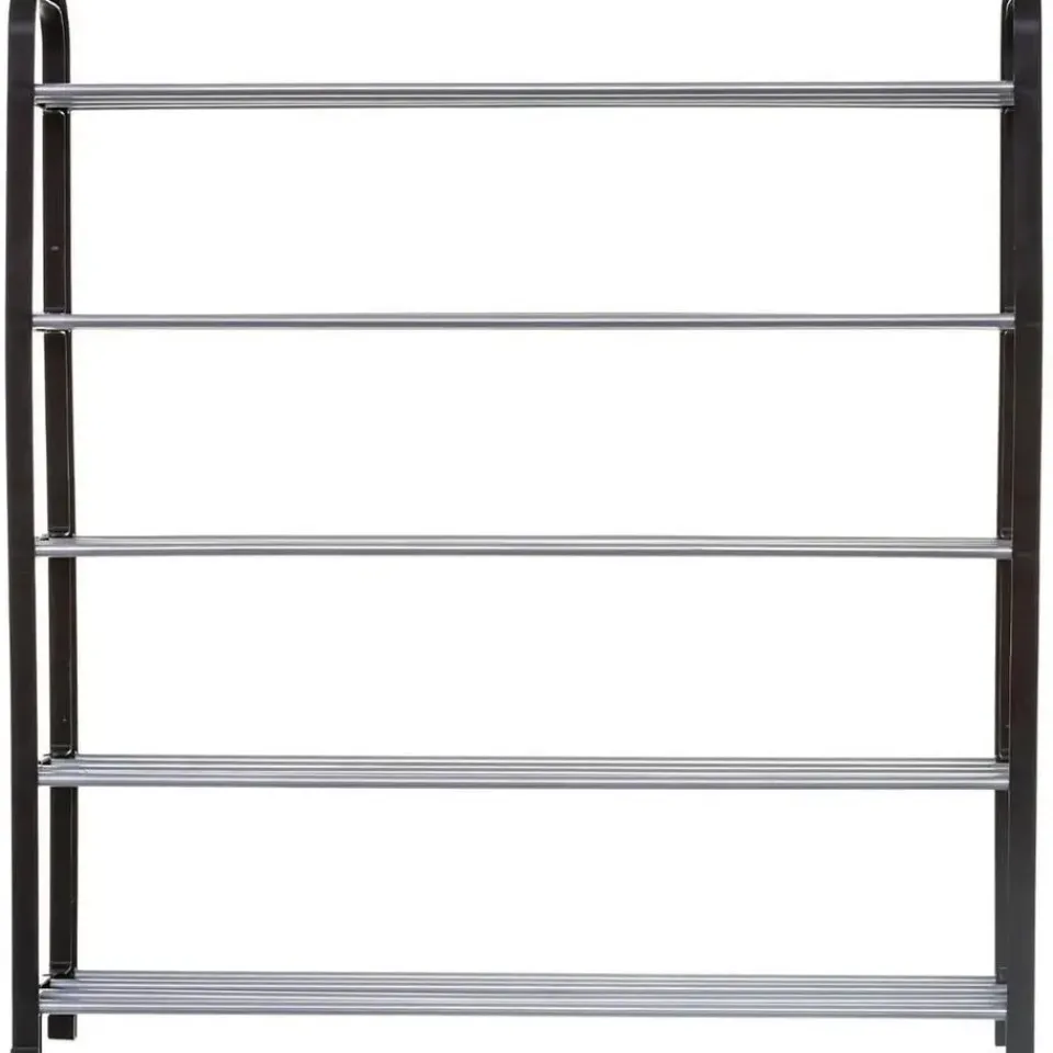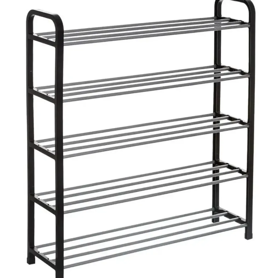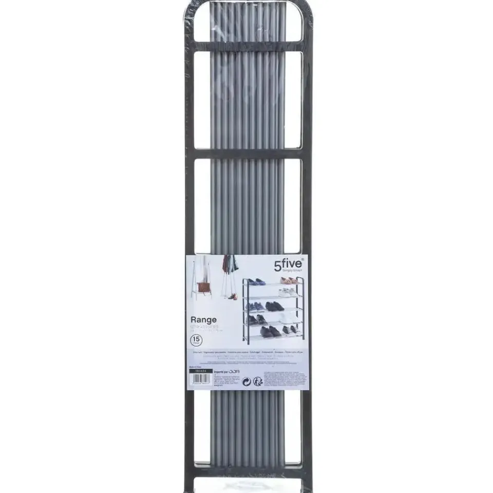 Schoenenrek/schoenenkast zilver/zwart 71 x 78 cm van metaal/kunststof. Dit schoenenrek heeft 5 planken en ruimte voor 15 paar schoenen. U dient het rek zelf in elkaar te zetten, bevestigingsmateriaal inbegrepen. Afmeting: ca. 71 x 19 x 78 cm. Materiaal: metaal met kunststof.