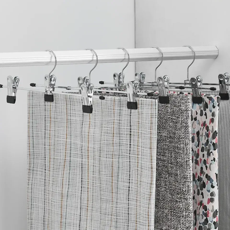 – Verstelbaar in de breedte: De broekhangers zijn verstelbaar in de breedte en dus geschikt voor het ophangen van broeken en rokken maar ook kleine zaken zoals handdoeken, sjaals, handschoenen, sokken, enz.