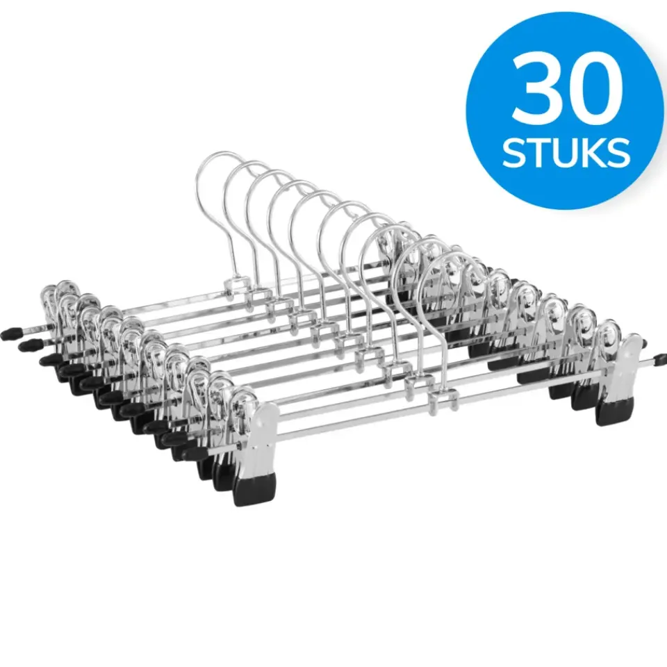 Heb je hangers voor broeken of rokken nodig? Kies dan voor deze set van 30 verchroomde, kwalitatieve hangers van ACAZA.