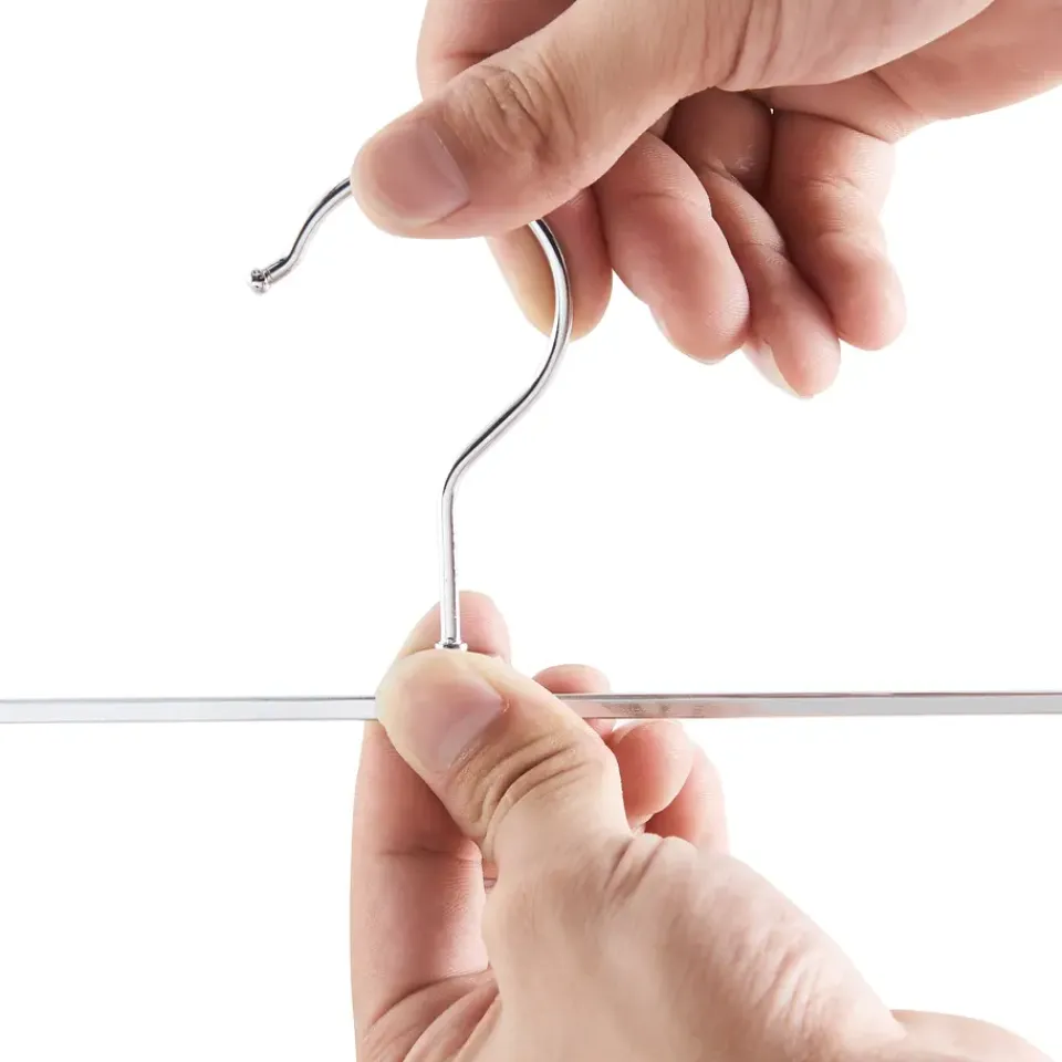 Deze kledinghangers zijn gemaakt uit verchroomd metaal en hebben een PVC laag aan de klem. Dankzij de antisliplaag zullen uw kleren mooi blijven hangen, zonder plooien of kreuken. Als dat niet handig is!