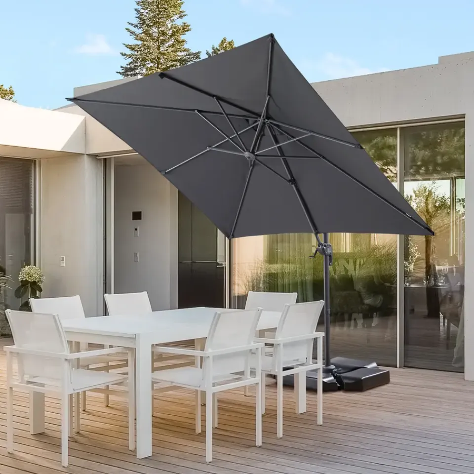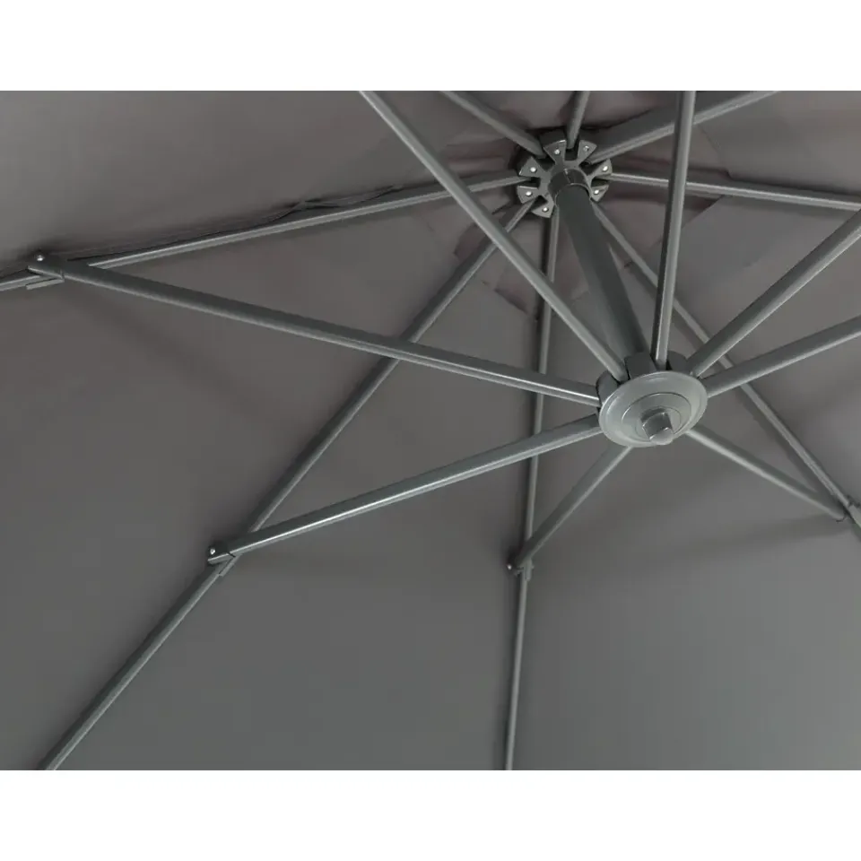 – Stevige aluminium constructie: De zweefparasol heeft een aluminium frame wat de constructie stevig, maar toch niet te zwaar maakt.