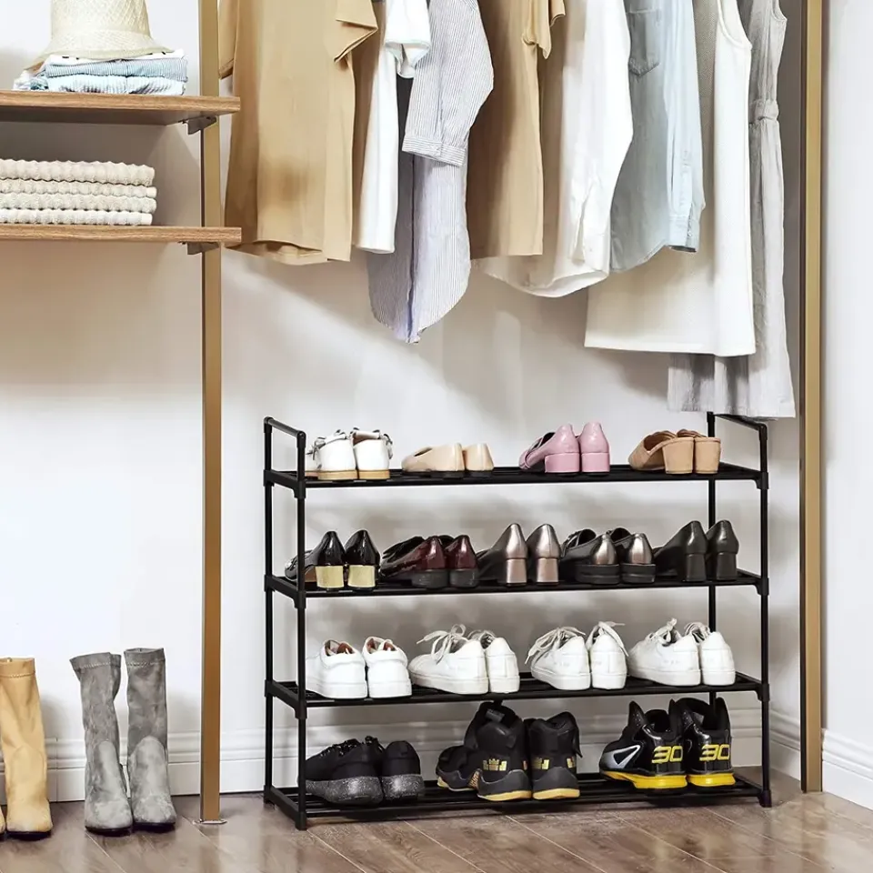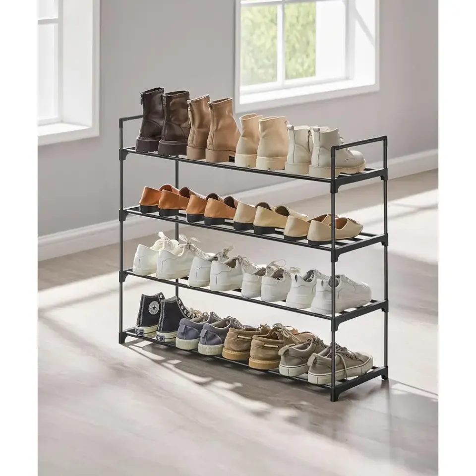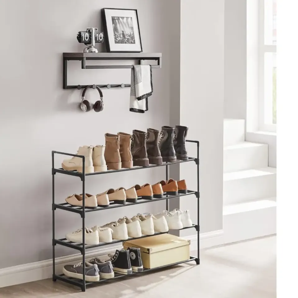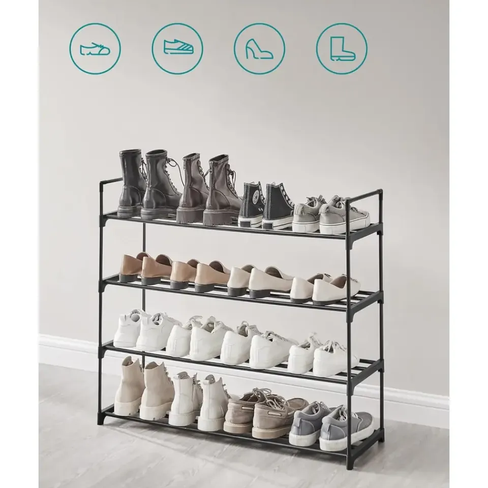 Voorbij zijn de dagen dat al je schoenen over de vloer verspreid staan. Met dit schoenenrek met 4 niveaus, kan je jouw schoenen georganiseerd houden in plaats van ze in een hoekje te laten rondslingeren. Schuif onstabiele rekjes aan de kant. Dit schoenenrek is gemaakt van stevige metalen buizen (Ø 14 mm, wanddikte 0,22 mm) en hoogwaardige PP-kunststof connectoren en kan een totaalgewicht tot 16 kg dragen. 16-20 paar? Geen probleem voor dit schoenenrek! Elke niveau kan 4 paar schoenen bevatten. Dankzij de begrijpelijke instructies en genummerde onderdelen kan je dit schoenenrek in een handomdraai in elkaar zetten.