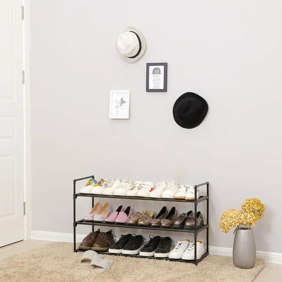 Sterke materialen: dit schoenenrek is gemaakt van “heavy-duty” metalen buizen (14 mm diameter, 0.22 mm dik) en sterke PP plastic verbindingsstukken. Daardoor kan het tot wel 12 kg dragen.